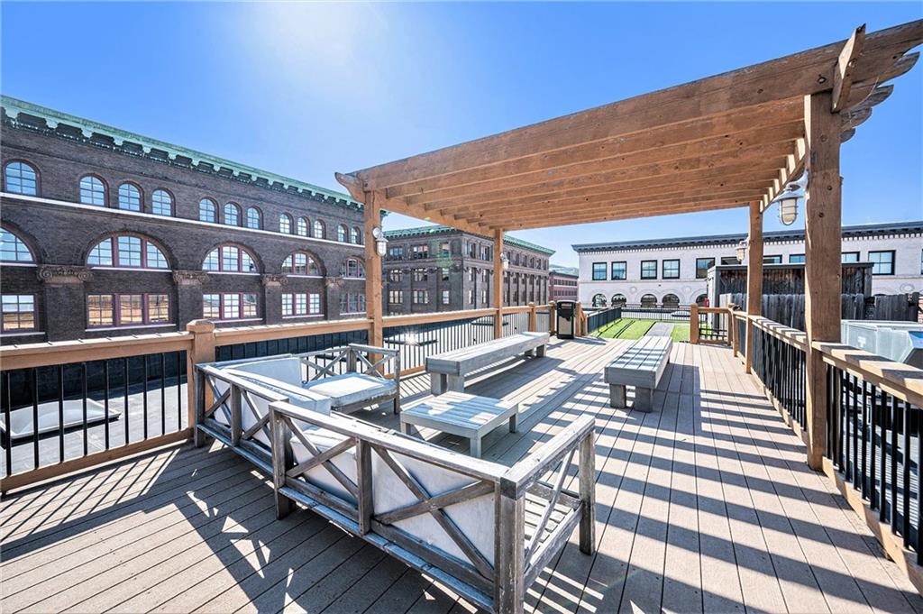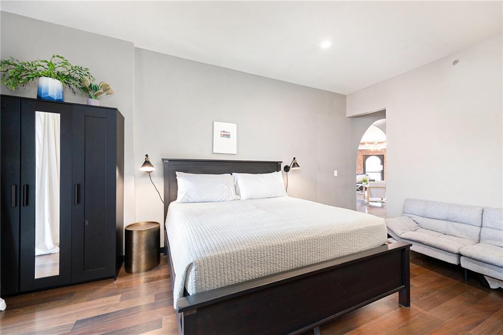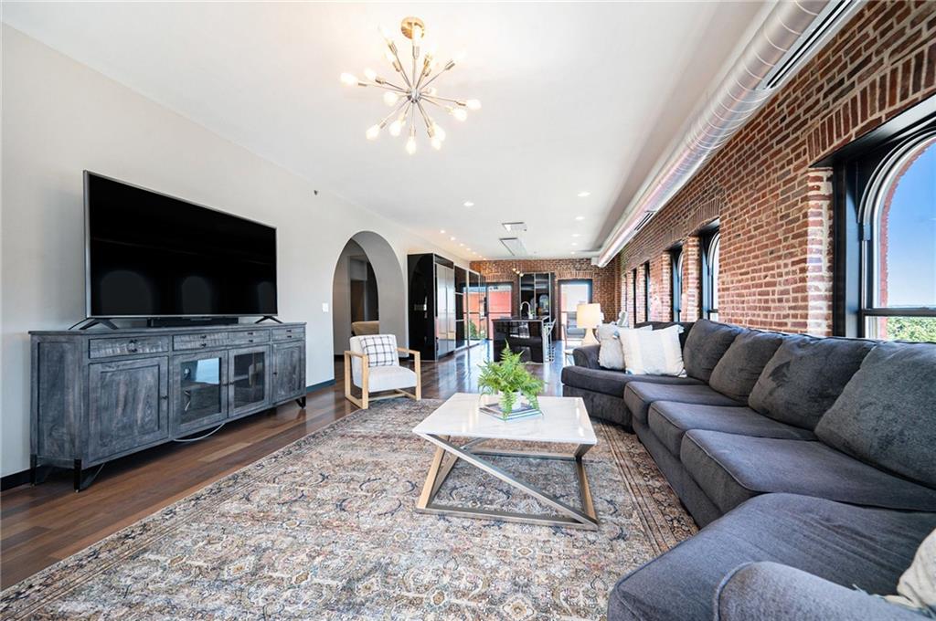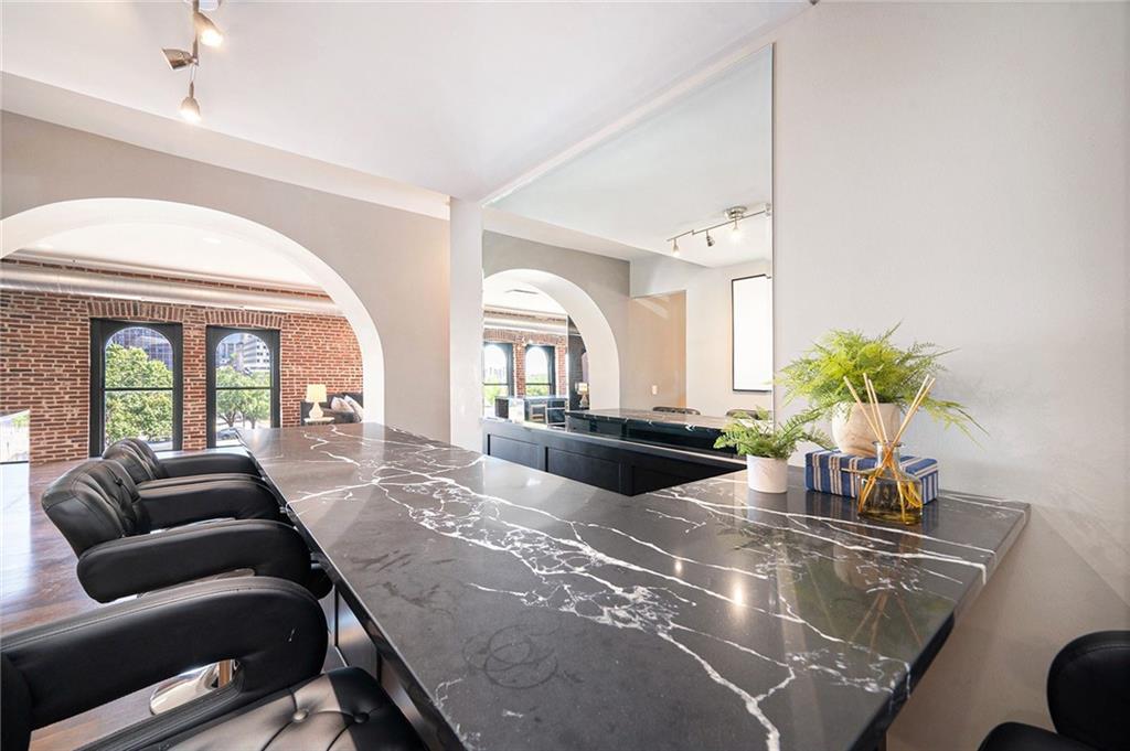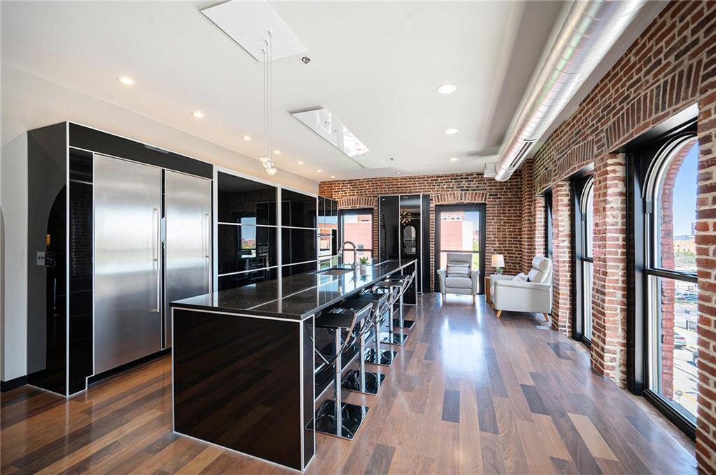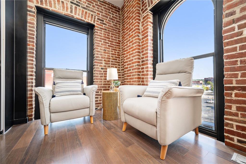This exclusive condo in the coveted Garment District effortlessly balances sleek, modern design with timeless character. Park in one of your three dedicated garage parking spaces and walk into soaring windows that give way to views of the River Market and Downtown KC. Exposed brick and dramatic arches set the tone, while Brazilian hardwood floors provide a warm, sophisticated backdrop throughout. With two expansive living areas and a tailored bar area in between, there’s plenty of room to entertain or unwind. The state-of-the-art kitchen is a showstopper, featuring a massive island with seating, and designer finishes throughout. Retreat to the luxurious primary suite, where a free-standing soaking tub, tiled walk-in shower, and floating double vanity offer spa-like indulgence. This condo also pleases with two storage units and in-unit laundry. Residents of Soho Lofts enjoy low HOA fees and amenities which include a community room, fitness center, and a rooftop terrace with spectacular panoramic views. City living has never been better with everything downtown has to offer for entertainment, shopping and dining right at your fingertips! Can be sold furnished so move right in!