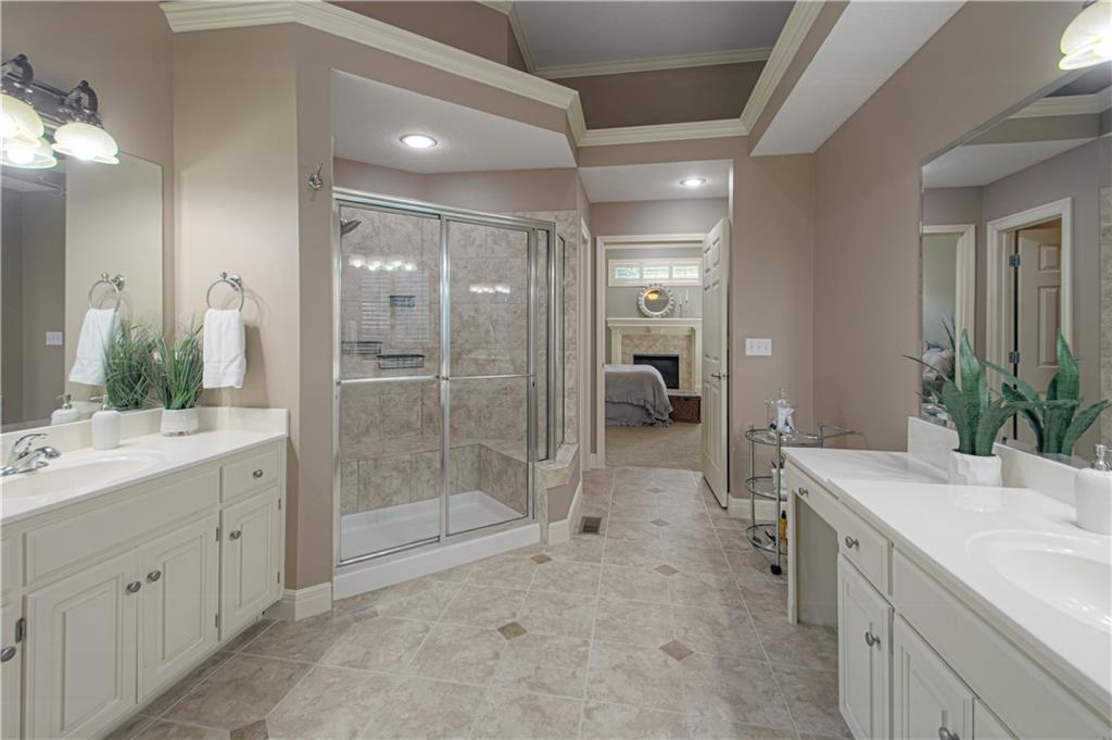 CHECK OUT THE VIDEO TOUR! MOTIVATED SELLER!! Gorgeous Light Filled Home w/ over 5000 sq ft of total living space! Perfect home for Entertaining! Soaring ceilings & plantation shutters throughout Main living area! Beautiful Hardwoods & Tons of Custom Molding! Huge Chef's Kitchen w/ incredible storage, oversized walk in pantry, Stainless steel appliances- double ovens, gas cooktop, microwave drawer- custom cabinets & Kitchen Island. 4 Fireplace-Hearth Room, Great Room, Primary Bedroom & Recreation Room in basement! Beautiful Main Level Owners Suite w/ HUGE walk in closet, & luxurious bath!!Main Level Office has Acoustic Wood Slat Wall Paneling. The 2nd level has 3 Large bedrooms w/ walk in closets & bathroom access. 2nd Floor Loft area! Basement Theatre room has 75 inch SONY TV --Perfect for watching Football Games or Movies! Recreation Room has fabulous wet bar w/ dishwasher & wine storage. The lower level bedroom is perfect for guests or as a designated work out room! There is a walk in closet & bath access. Upgrades Galore- New 50 year lifetime roof with ice & water shield w/ transferable warranty, 6 inch gutters & leaf guards. Full outdoor lighting system! High End Sun Shade on backyard deck provides amazing shade on sunny days & includes retractable wind feature! Built in Sound system in Hearth room & Owners bedroom. New LED light bulbs throughout most of home. Comfort height toilets added to Main level & basement bath.Google Fiber! Gevanti outdoor weather station on back deck with inside monitor provides real time weather report! 800 sq ft of basement storage space. Radon mitigation system. Custom rope lighting system in front foyer niche & basement theatre room provides fun & mood lighting! Sit on the Front Porch and Watch Football Homecoming Parade in the Fall! AAA Rated Schools & Super convenient location close to shopping, restaurants schools and great highway access.Seller providing a 1 year home warranty from Old Republic!