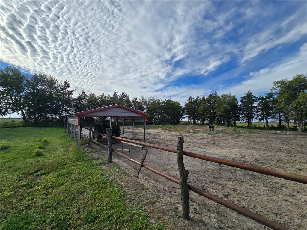 This 25.15-acre farm in Marion County offers a combination of a modern home and horse-ready acreage. The 1,404 sq ft residence was built in 2023 and features an open floor plan with a large kitchen island and a pantry for added storage. The layout provides practical living space while connecting directly to the surrounding farmstead. The land is designed for horses, with three paddocks fenced in four-strand smooth wire and a large dry lot for managing forage recovery. A pond provides reliable livestock water, and the house and farmstead are served by rural water. The grass mix includes both native and cool-season varieties to balance grazing throughout the year. Supporting facilities are already in place. The horse pens feature multiple stalls, while open-sided shelters provide cover in all seasons. A barn stores hay, feed, and equipment. A chicken coop is in use, and a small converted tiny home has been finished with heat and air conditioning to serve as a dog house or auxiliary space. The home site includes mature shade trees, fruit trees, and landscaped beds that add comfort and function across the seasons. The property sits on a blacktop county road for dependable access. Hillsboro is approximately 21 miles south, Marion is about 19 miles southeast, and Herington is roughly 18 miles northeast, giving several nearby options for schools, supplies, and services. It is also located about halfway between Marion Reservoir and Herington City Lake and Reservoir, both provide recreational opportunity nearby. While the farmstead is currently operated for horses and provides a ready-made setup for continued equine use it also provides flexibility to adapt for other livestock if desired. Contact the listing agent today to schedule a showing and see all this farm has to offer!