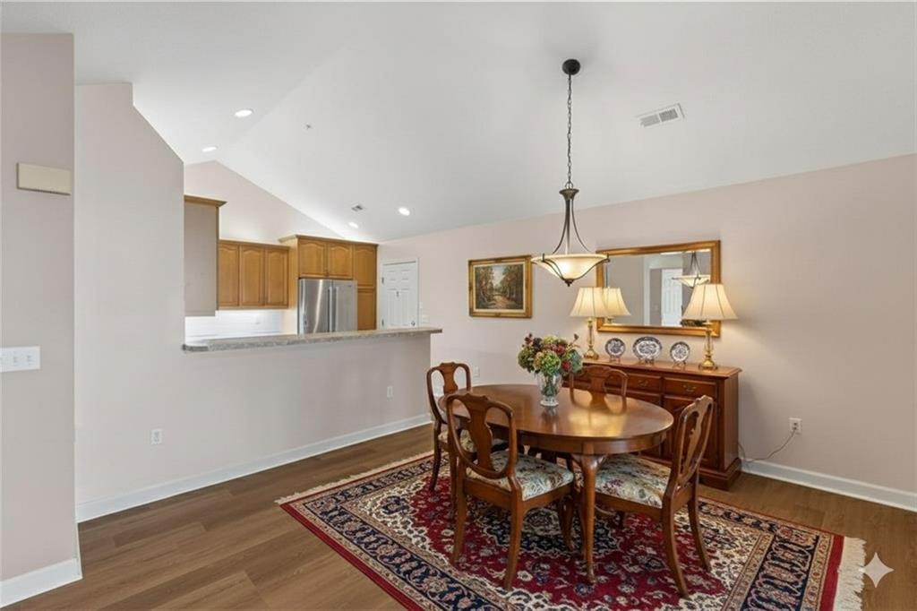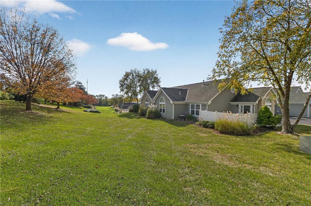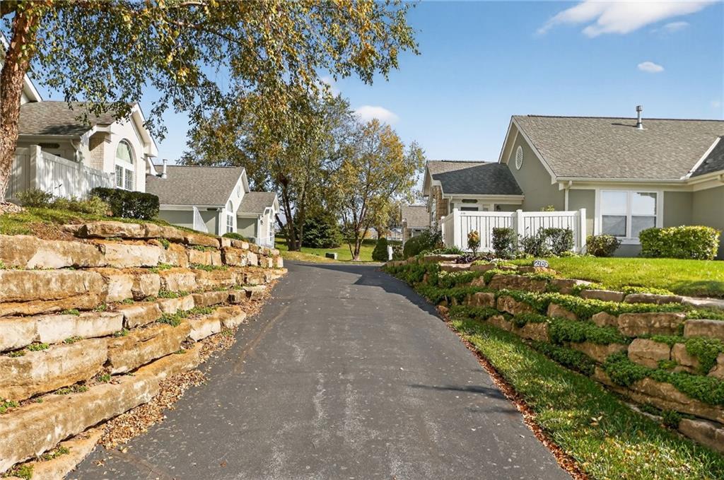 One-Level, Maintenance-Provided Living in the Heart of Shawnee! This bright and inviting 2-bedroom, 2-bath patio villa offers an open floor plan with vaulted ceilings, large windows, and a cozy fireplace that anchors the main living space. The kitchen features ample cabinet storage, modern appliances, and a breakfast bar overlooking the living area—ideal for everyday living or entertaining. Both bedrooms are generously sized with great closet space, while the primary suite includes a double vanity and walk-in shower. Main-level laundry and an attached garage add everyday convenience. Enjoy low-maintenance living in a quiet community, just minutes from shopping, dining, and nearby parks.