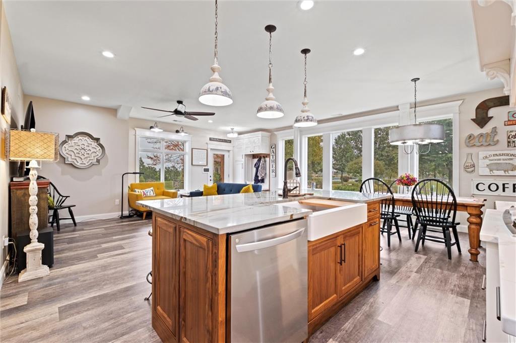 35+ Acre Unique opportunity to own a Family Homestead/Ranch property which includes a beautiful Main House with 3 Bedrooms & 2.50 Baths on the main level, and a Non-conforming bedroom/office space and 1 full bath, large family room with wet-bar, a generously sized laundry room, and storage areas on the walk-out lower level; beautiful hardwood flooring, cabinets and features throughout. Other features of the main home are stacked washer/dryer closet in primary bedroom, nicely stained hardwood cabinets and island in the kitchen, sunroom, concrete patios and a deck off of the primary bedroom for entertaining and relaxing. Guest house features 2 Bedrooms/1.5 Baths, and is beautifully created with all of today's popular features in mind such as an open kitchen/dining/living room area with a large island, feature stone wall and LVP flooring; the hall 1/2 bath has modern fixtures and tile flooring; and laundry/utility/mud room is a generous size with extra space for storage. Farmhouse doors are another feature on the 1/2 bath, laundry room and primary bedroom, primary bedroom has reclaimed wood ceiling feature, terrazzo tile flooring, large walk-in shower and a huge walk-in closet. Secondary room has lots of light and a walk-in closet. The original farmhouse on this property is a rental which now brings $925 a month, and features 3 Bedrooms, 2 Baths, livingroom, eat in kitchen, laundry room and a small barn for storage, and renter would like to stay. All on 35+ acres of peaceful rolling pasture and trees. Bonus buildings are: Out Building 20'x30'; and Quonset hut steel/metal building is 55'x70' with 17 1/2 ft wide x 12 ft tall door opening and 6'' thick concrete floor reinforced with 1/2" steel rebar for all of your outdoor equipment and toys. This property has everything you need to move right in and enjoy all of its wonderful features. Make an appointment to see it and make it yours today!