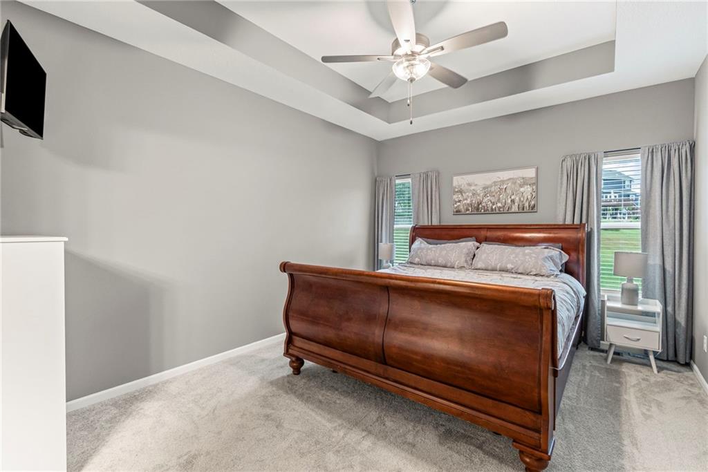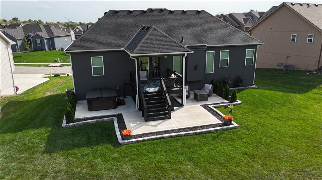 Step inside this nearly new Liberty home where thoughtful design and everyday comfort come together. The main level greets you with a spacious, light-filled living room anchored by a cozy gas fireplace and plush carpet that invites you to kick off your shoes and stay awhile. Just beyond, warm hardwood floors carry through the kitchen and dining area—an open, seamless space perfect for gatherings. The kitchen shines with quartz countertops, stainless steel appliances, ample cabinetry, and a pantry, while the conveniently located laundry room just off the kitchen keeps everything practical and within reach. The primary suite is privately tucked away, offering a peaceful retreat with a large walk-in closet and a spa-inspired bath complete with dual sinks, soaking tub, and separate shower. Two additional bedrooms and a full bath round out the main level. Downstairs, the finished lower level expands your living space with a generous family room ideal for movie nights, game days, or a cozy hangout spot. You’ll also find a fourth bedroom and third full bath—perfect for guests or a home office. Out back, unwind on the covered deck or entertain on the extended patio overlooking the beautifully maintained yard. With an oversized three-car garage and access to Clay Meadows’ neighborhood pool, this home blends small-town Liberty charm with modern style and convenience.