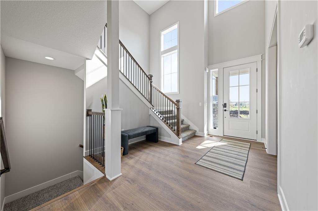 Welcome to The Delano — where modern elegance meets timeless comfort. This stunning home showcases a modern Euro elevation package and an exceptionally thoughtful design that redefines luxury living. Featuring five spacious bedrooms and four full baths, The Delano offers both functionality and sophistication at every turn. The main level impresses with a versatile pocket office or an additional flex room accompanied by a full bath—perfect for guests or a private workspace. The gourmet kitchen is a showpiece, adorned with beautiful quartz countertops, stunning cabinetry, and a beverage center complete with a built-in refrigerator, extra storage, and subtle under-shelf lighting that exudes refined ambiance. In the great room, a floating base cabinet with shelving and accent lighting creates a striking focal point, blending form and function seamlessly. Upstairs, the primary suite is a private retreat featuring an oversized walk-in closet and a bonus flex space—ideal for a home office, fitness area, or reading nook. Additional highlights include a well-appointed laundry room with cabinetry and sink, an irrigation system with lush landscaping, and a custom lighting package that elevates the home’s warmth and style. The lower level is thoughtfully stubbed for a future bath and wet bar, offering endless possibilities for expansion. The Delano is more than a home—it’s a statement of modern sophistication designed for effortless living.