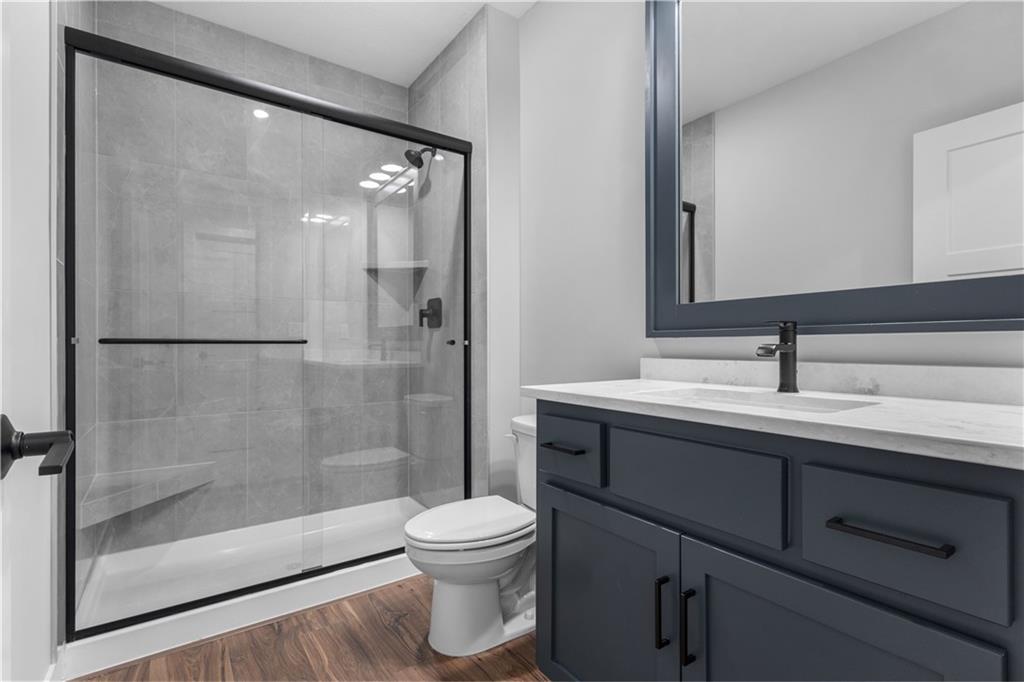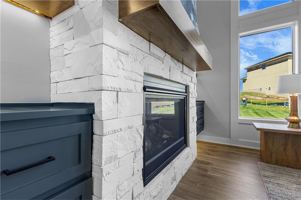 Welcome to The Opus II — a modern farmhouse masterpiece blending timeless charm with sophisticated design. This stunning home features six spacious bedrooms, five full baths, and a dedicated main-floor office, offering the perfect balance of comfort and versatility. The chef-inspired kitchen is the heart of the home, showcasing stunning quartz countertops, an L-shaped prep kitchen, and rose gold cabinet hardware that adds a touch of modern glamour. A convenient boot bench with drop zone keeps daily life organized, while the extended three-car driveway provides both practicality and curb appeal. The great room impresses with a floor-to-ceiling stone fireplace and elegant built-in cabinetry with floating shelves, creating a warm and welcoming focal point. Throughout the home, the modern trim package, wainscoting, and sleek black interior hardware elevate every detail with refined style. Downstairs, the finished lower level is designed for entertaining, complete with a wet bar peninsula, full-sized refrigerator, and an additional bedroom and full bath. Every element of The Opus II reflects thoughtful craftsmanship and luxurious comfort—perfectly suited for both lively gatherings and peaceful everyday living.