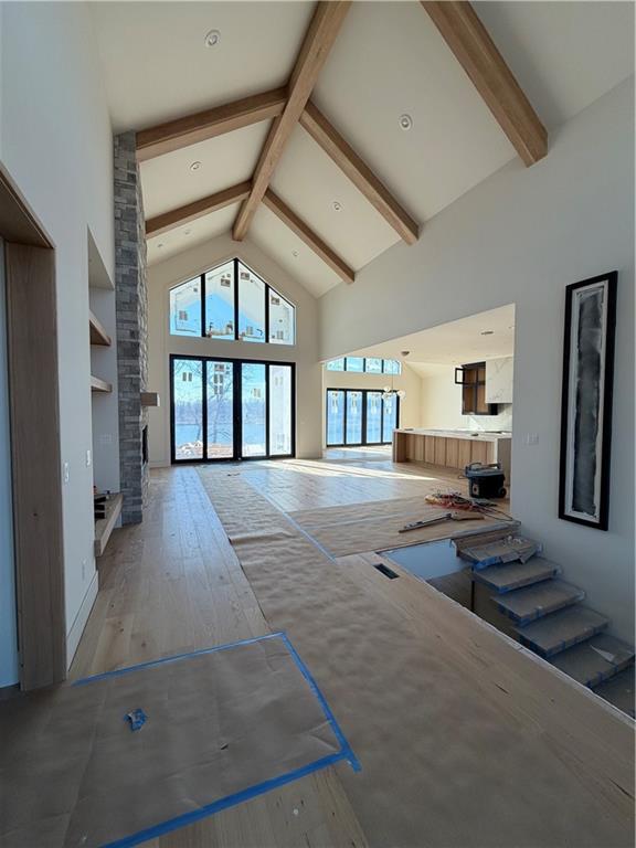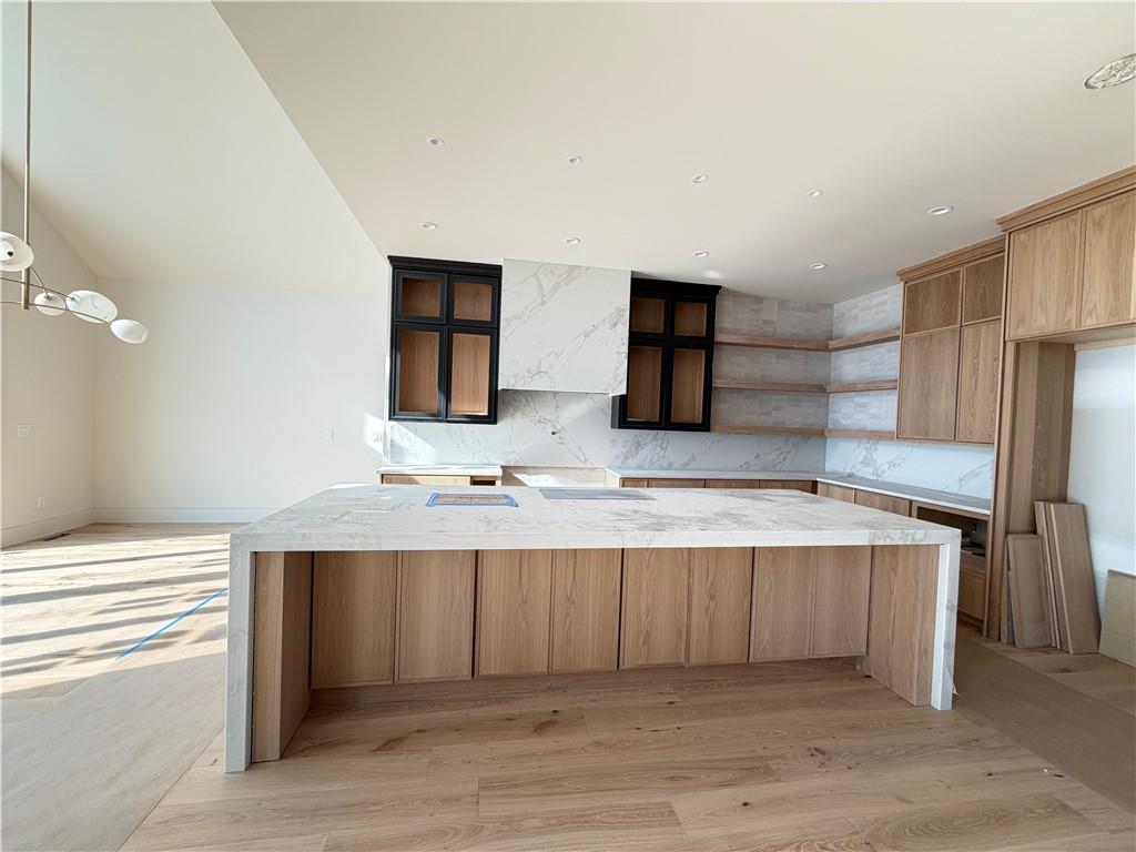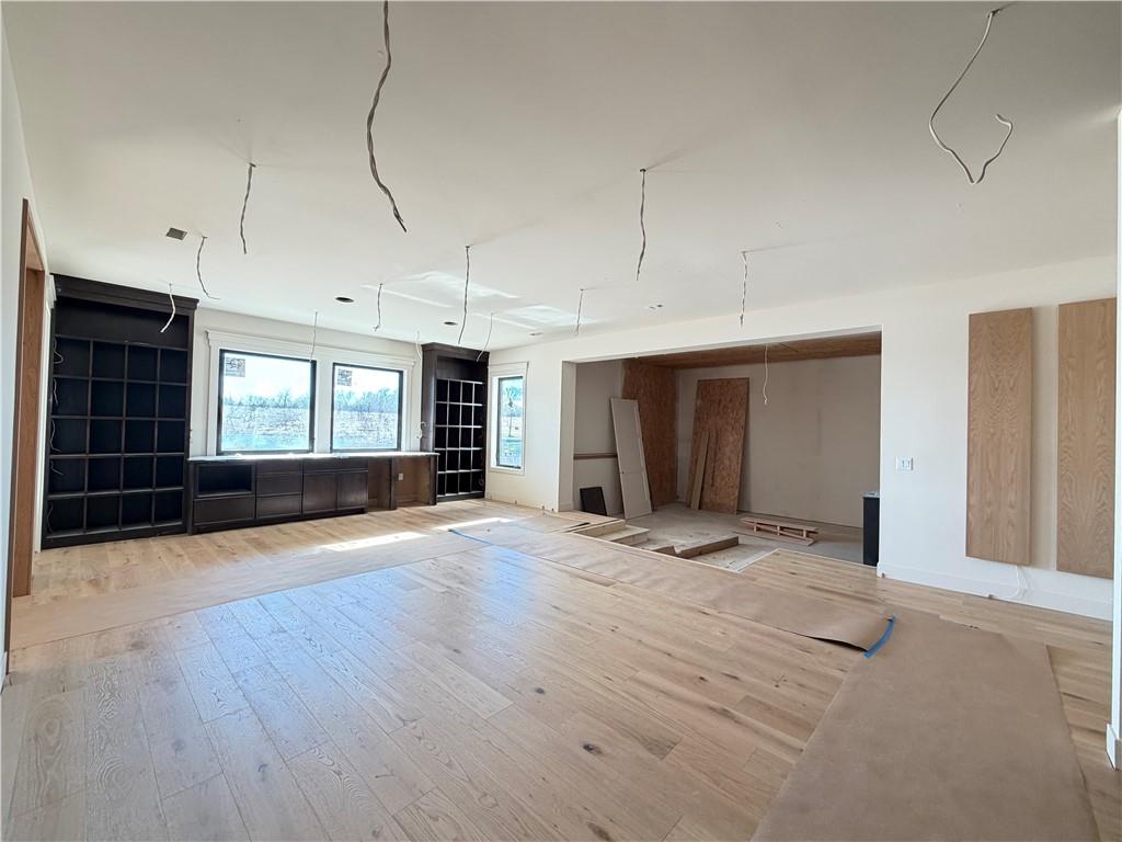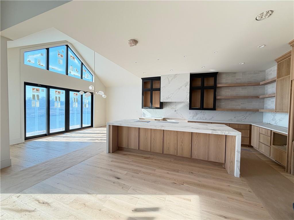 WaterCrest Landing | Sunset Views. Elevated Living. LUXURY REDEFINED - GOLF SIMULATOR - BACKS TO WATER - Exquisite new construction by Spiess Custom Homes in the coveted WaterCrest Landing. This masterpiece offers the perfect blend of modern luxury and functional design, backing directly onto the community pond with a desirable flat lot ideal for a future pool. Soaring ceilings and expansive windows frame breathtaking views from every angle. The main level showcases ultimate convenience with a private primary bedroom suite and a separate, secondary bedroom quarter with full bath, perfect for guests or multi-generational living. The true entertainer's dream awaits on the walk-out lower level. This space is unparalleled, featuring a state-of-the-art Golf Simulator, a full professional bar, and a direct walk-out to a covered patio with stunning water views. Car enthusiasts will appreciate the oversized 3rd-car garage providing ample space for toys and storage. Luxurious, top-tier finishes throughout—where style meets everyday living. This is more than a home; it's a lifestyle.