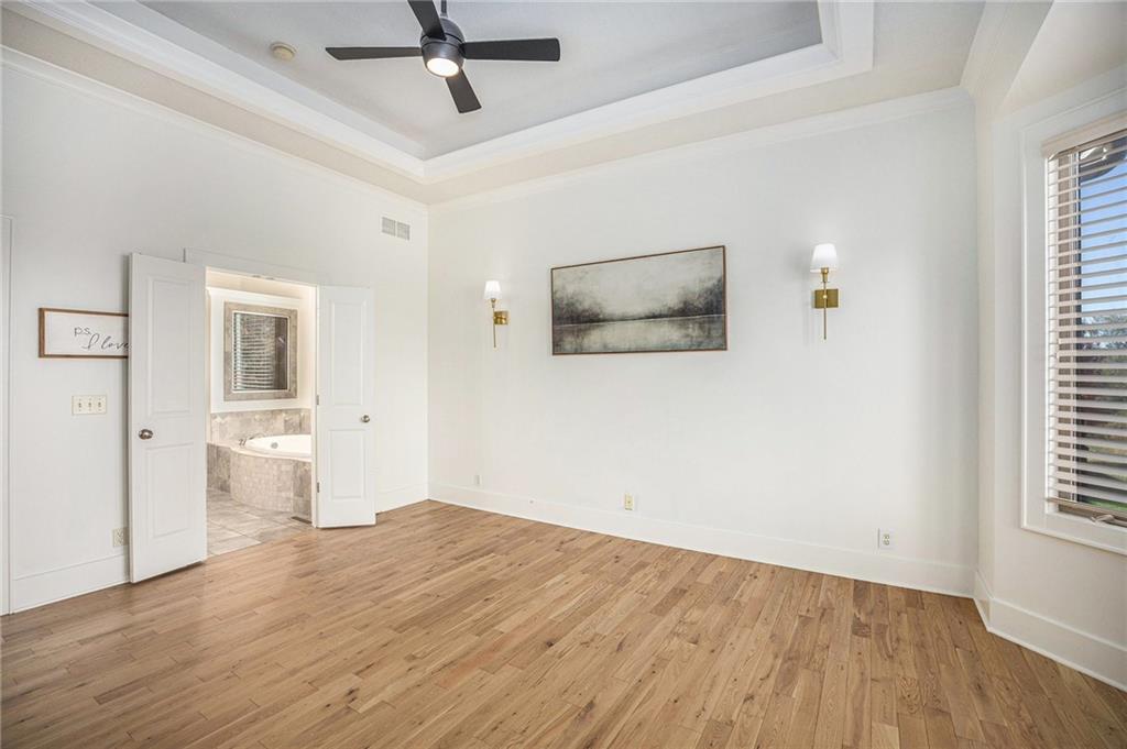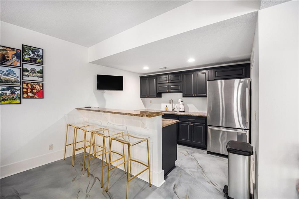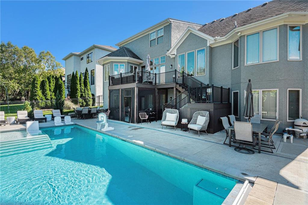 This gorgeous 1.5 story home in the Wyngate Subdivision is close to schools, shopping, parks, and more! Enjoy the outdoors on the newer composite deck, in the serene, screened patio area, or in the fabulous swimming pool - all backing to trees and greenspace. Inside this stunning home are numerous updates including gorgeous lighting, updated fixtures, knobs & pulls, interior paint, and more! New hardwood floors run throughout the main level. The updated kitchen features new quartz counters, a gorgeous glass tile backsplash, newer appliances, a step-in pantry, an island with bar seating, and a large, light, and bright eating area. The kitchen is fully open to the beautiful hearth room with a zero-clearance fireplace and an amazing, custom, built-in cabinet. The fully updated Butler's pantry connects the hearth room to the spacious dining room and boasts new cabinetry, a soapstone countertop, and a built-in nugget ice maker. The spectacular living room shares a fireplace wall with the hearth room and features vaulted ceilings and an amazing chandelier. The main level primary bedroom has a tray ceiling, bay window, and hardwood floors. The primary bath enjoys double vanities, a jetted tub, a tiled shower, and a large walk-in closet. The main level also boasts a half bathroom and laundry room. Upstairs is a small loft/landing area and three bedrooms - all with walk-in closets. The second bedroom has a private bathroom with shower only and the third and fourth bedrooms share a Jack and Jill bathroom with double vanities and shower/tub combo. The lower level features a huge rec room with gorgeous, epoxied floors, a wet bar with beautiful cabinetry and granite counters, and more! The spacious 5th bedroom has a beautiful bay window and a huge walk-in closet. The lower level also features an updated full bathroom and massive storage area. Additional storage is available in the three-car garage. Don't miss out on this truly stunning home!