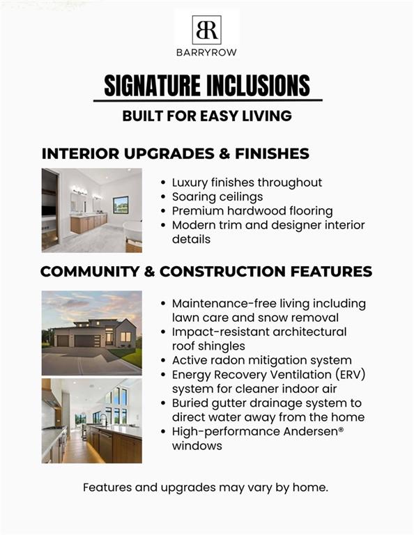 Spacious Luxury in the Heart of BarryRow – The Platino! The Platino two-story floor plan at BarryRow offers 5 bedrooms and 3.5 bathrooms with a thoughtfully designed main level featuring a private office at the entry, a functional mudroom, and an open, light-filled layout perfect for entertaining. The kitchen shines with a large waterfall quartz island, custom frameless cabinetry, gas range, and custom LED lighting, all paired with high-end finishes throughout. The exterior blends stucco, brick, and cypress accents, while the interior includes 8’ solid-core doors and Andersen energy-efficient windows. Built for comfort and efficiency with 2x6 framing, spray-foam attic sealing, double drain tile waterproofing, ERV ventilation, radon mitigation, and dual Amana high-efficiency heating and cooling systems. Relax outdoors on the private Trex balcony off the primary suite. The home also includes a 3-car tandem garage and is located in a maintenance-provided community, offering effortless living with the luxury and quality BarryRow is known for. Photos may show the same Platino floor plan from a different home; finishes and selections may vary. This home follows the same Platino layout with an unfinished basement. Limited availability. Ask about special closing incentives, in-house financing options, and the builder’s 3-2-1 interest rate buy-down on all new homes. Schedule your private tour today.