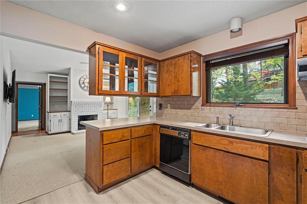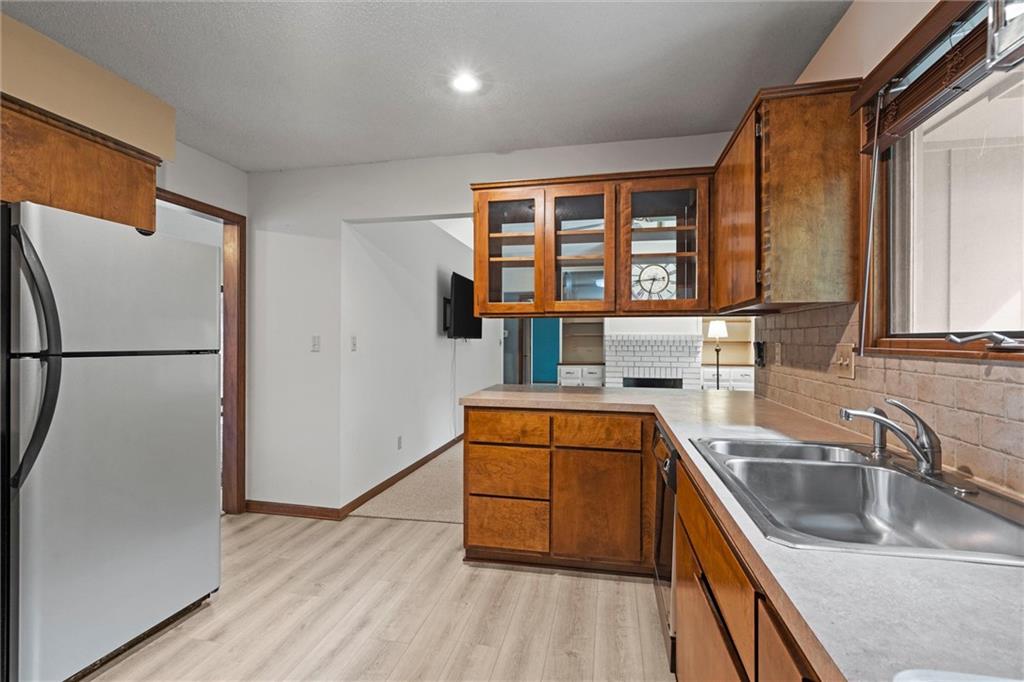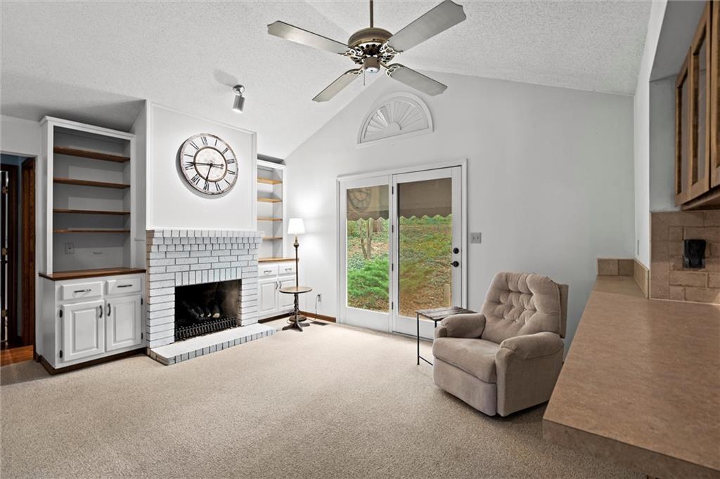 Welcome to this beautifully maintained one-owner ranch nestled in one of Lawrence’s most desirable neighborhoods. This thoughtfully cared-for 2-bedroom, 2-bath home offers easy one-level living surrounded by mature trees and peaceful, wooded views. Inside, you’ll find soaring ceilings and large picture windows that fill the home with natural light. The spacious living room features a brick fireplace with built-ins, while the adjoining dining area overlooks the private backyard. The kitchen retains its timeless wood cabinetry and offers a great layout with ample storage and counter space. Both bedrooms are generously sized, and the primary suite includes an en-suite bath and great closet space. Recent maintenance updates—including cleaned ductwork and attentive care—make this home move-in ready. Situated on a quiet street with a two-car garage and lush landscaping, this property perfectly balances comfort, convenience, and classic charm—all just minutes from KU, downtown Lawrence, and local parks.