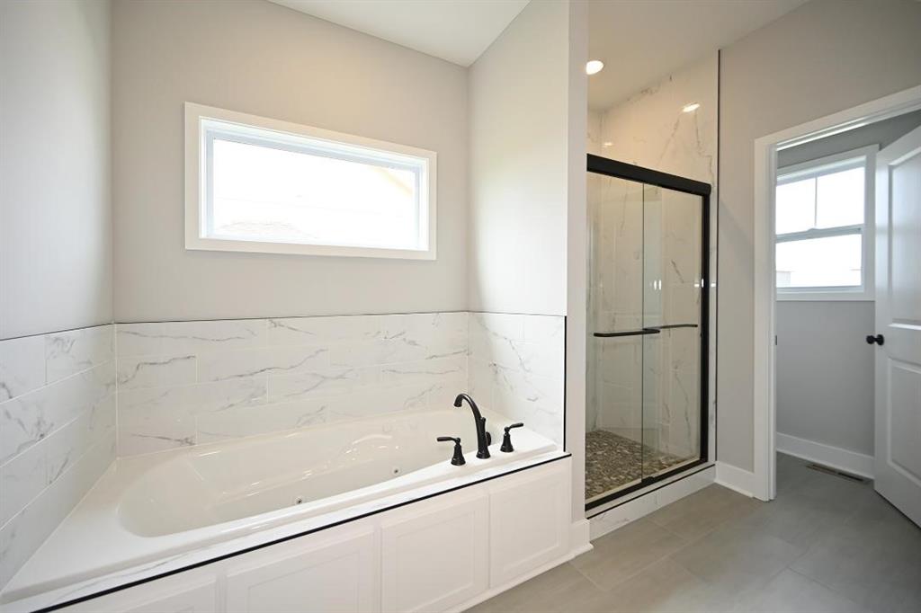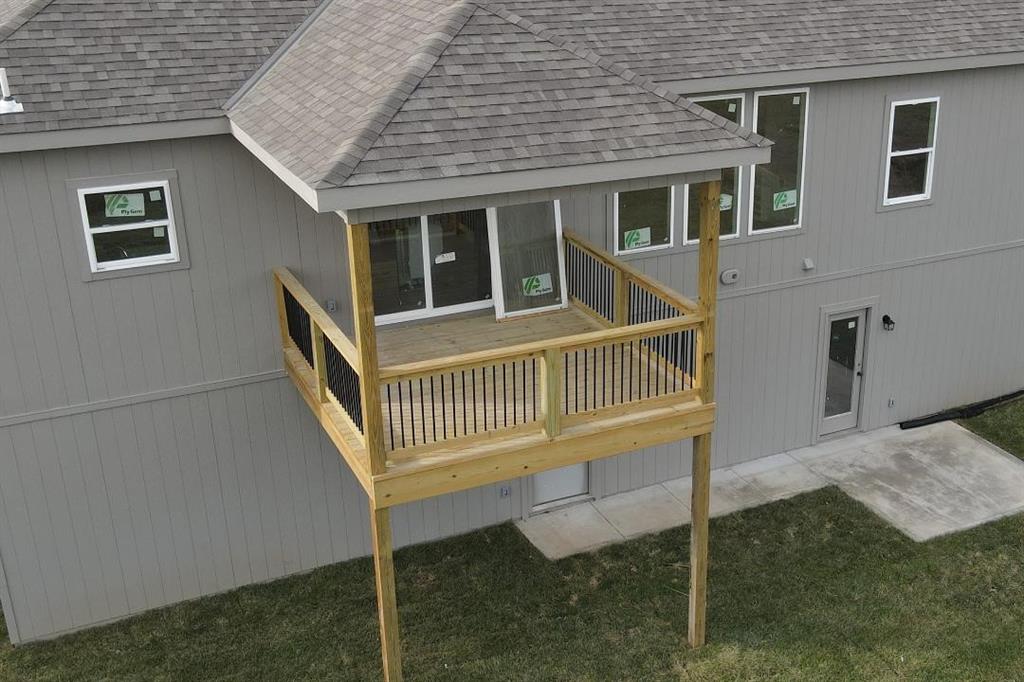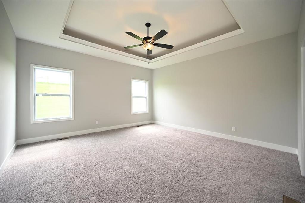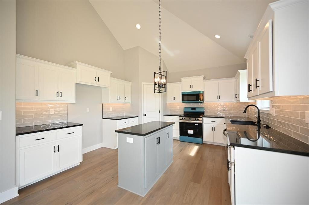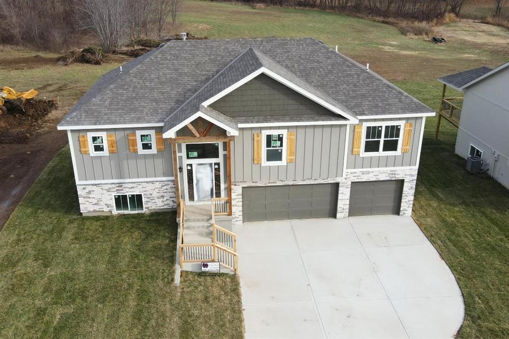 This beautiful home features a range of custom amenities that enhance both functionality and style. The heart of the home features a stunning kitchen with custom white cabinets, a spacious pantry, and an inviting island topped with gorgeous granite. Modern stainless steel appliances add both style and utility, while the covered deck, complete with a ceiling fan, provides a perfect outdoor stocked lake for fishing. The great room boasts LVP flooring throughout, complemented by a beautiful stone fireplace creating a cozy and elegant focal point. The laundry room is efficiently designed with tile flooring and custom cabinetry to keep things organized. The home includes two bedrooms with carpet, each featuring tray ceilings and ceiling fans for added comfort. The guest bathroom is stylishly designed with tile flooring and a tub, ensuring convenience for visitors. The master suite is a true retreat, featuring plush carpet and a spacious walk-in closet. The master bathroom boasts custom cabinets, a luxurious jetted tub, double vanity sinks with sleek black faucets, and a huge tile shower for a spa-like experience. The lower level includes an additional bedroom with carpet and a ceiling fan, along with a full bathroom featuring tile floors and a tub. The home is equipped with ample recessed (can) lighting throughout, showcasing its thoughtful design. Additional highlights include an oversized three-car garage and eye-catching stone accents on the front of the home, making it not only functional but also visually appealing. This property combines elegance, comfort, and practicality, making it a fantastic place to call home! PHOTOS ARE SIMULATED MORE TO COME, LAKE IS STOCKED.