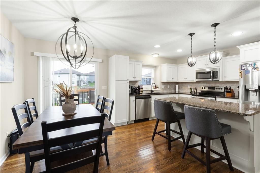 Welcome to Oak Run, where small community charm meets modern living. This 3-bedroom, 2-bath home sits on a quiet cul-de-sac and features an open floor plan designed for connection and comfort. Rich hardwood floors, a cozy fireplace, and large windows fill the home with natural light, creating a warm and inviting feel. The kitchen flows seamlessly into the dining and living spaces—perfect for family dinners or relaxing nights in. Enjoy the ease of main-floor laundry and a spacious primary suite built for everyday comfort. Step outside to a large fenced backyard and deck, ideal for morning coffee, summer barbecues, or watching the sunset. Built in 2018, the home blends modern finishes with the peace of mind of newer construction. Oak Run residents enjoy a neighborhood pool and a friendly, close-knit feel. You’re minutes from Lake Olathe, Prairie Highlands Golf Course, and all the dining, shopping, and recreation southwest Olathe has to offer. Located in the highly rated Olathe School District, this home delivers the perfect balance of comfort, convenience, and community.