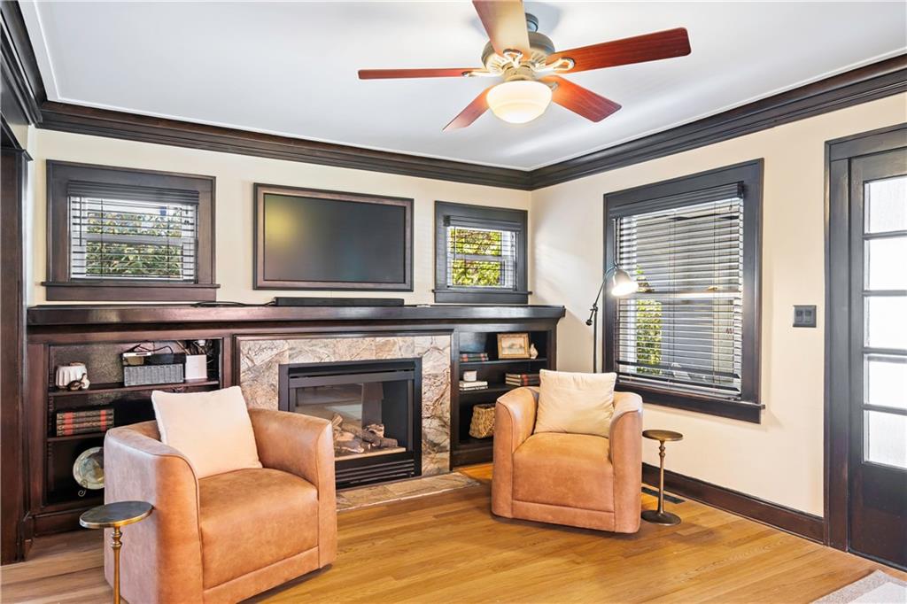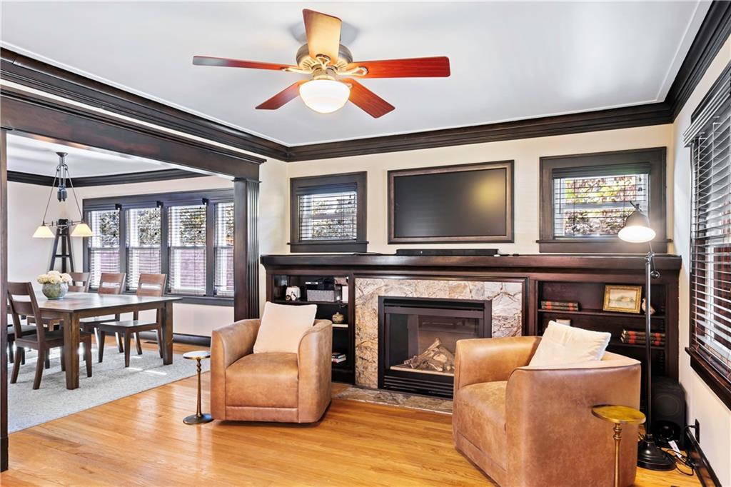 This house has just about everything you would want in a Brookside home...and MORE! A cozy front porch welcomes you inside to the bungalow floorplan: two bedrooms and full bath on the first floor; third bedroom, full bath and bonus space on second level. You will appreciate the original 1924 charm here: (gas) fireplace with bookshelves on either side; hardwood floors, crown molding, and stunning leaded glass doors in the spacious dining room lead you into the large, eat in kitchen. First floor bath recently completely remodeled! Upstairs, a sunny bonus room and updated bath connected to the third bedroom-check out the original Craftsman doors on the closets! Roof & HWH less than ten years old. Newer windows. Outside, the wide private driveway leads to a an oversized 22'x39' garage with it's own electrical box, water, gas furnace and a/c. Think of the possibilities here: man cave or she shed, kids' playroom, rec room, extra storage. This house sits in an ideal Brookside location--grocery store, bank, restaurants, cafes and shops just across the street!! The popular Trolley Track Trail is nearby as well. If you want to live in Brookside, this may be the ideal home for you!!