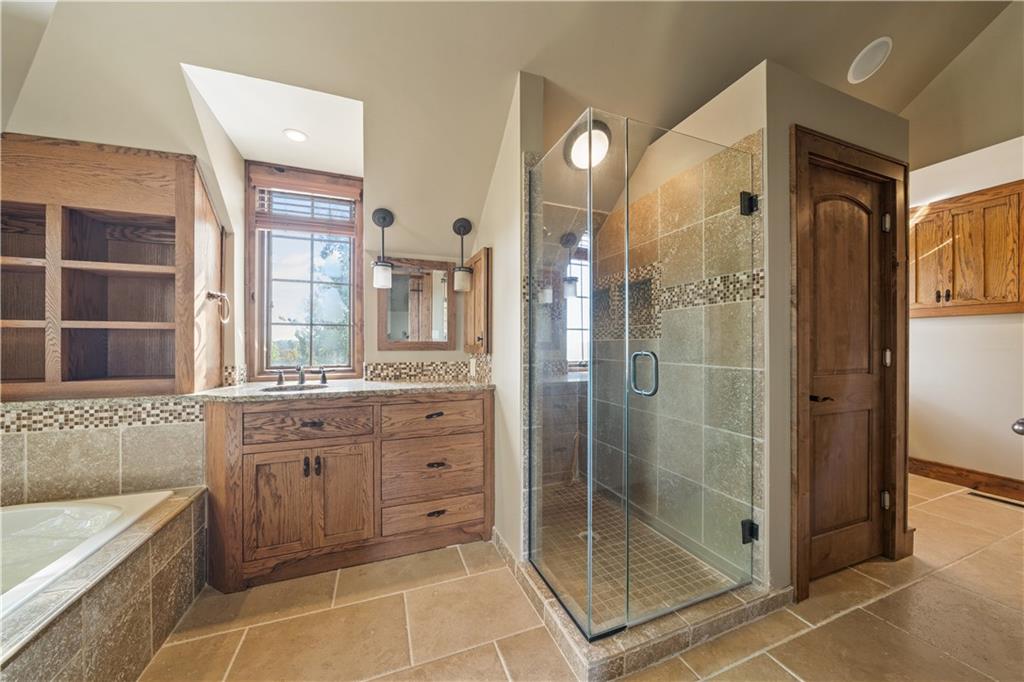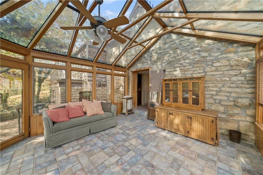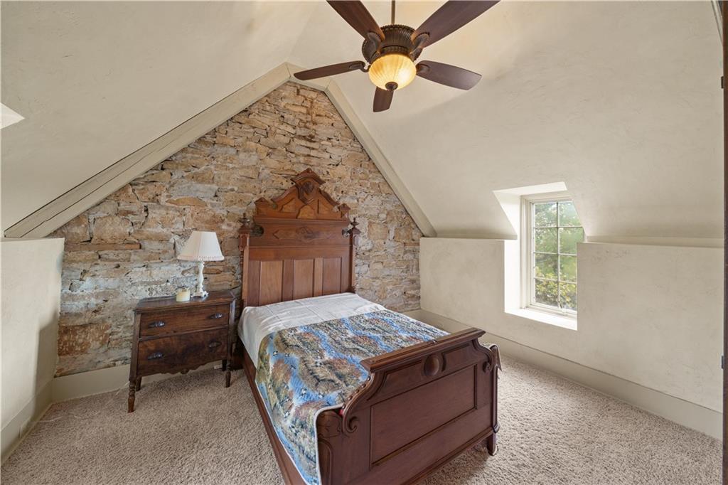 This is a property that comes along once in a lifetime, ownership of the “Elias Garrett house.” A beautiful homestead on 30.47 acres which includes a beautiful home, barn, horse barn, two car garage with guest quarters on a gated estate. Located hidden in the hills overlooking Shawnee Mission Park minutes away from all conveniences and schools. Well built and maintained stone home that includes all your modern updates and improvements. Updated chef’s kitchen with high end cabinets, wine cooler, granite topped island, granite counter tops and Jenn Air Appliances. Newer roof, sunroom and inground pool. All additions that have been added have used the same stone as original construction. Master suite updated with sound system, walk-in closet, bathroom with double vanity, shower, bathtub and heated floor tiles. Two HVAC systems, fireplace, wood burning stove will keep you cool in the summer and warm in the winter. A Generac generator will keep everything running smoothly if that rare outage happens. Large laundry room that even includes a shower/bath area for Fido. The two-car garage has a very comfortable guest quarters which includes a full bathroom with shower. Wildlife abounds, with frequent sightings of whitetail deer and turkeys. This property is zoned as AG (Agricultural) so bring those animals and gardening ideas. Horse barn includes a separate fenced area to allow horses to move freely. Water hydrants are located in multiply locations to use to wash off that equipment or water the animals as well as having a 23 zone sprinkler system installed surrounding the property. Enjoy that first cup of coffee sitting in the Sunroom as the deer wonder the valley in front of you or getting a drink from the aerated pond. For that outdoorsman two high end gun safes will remain with the property.This property includes a residential alarm and surveillance camera system with 24 hour monitoring.
