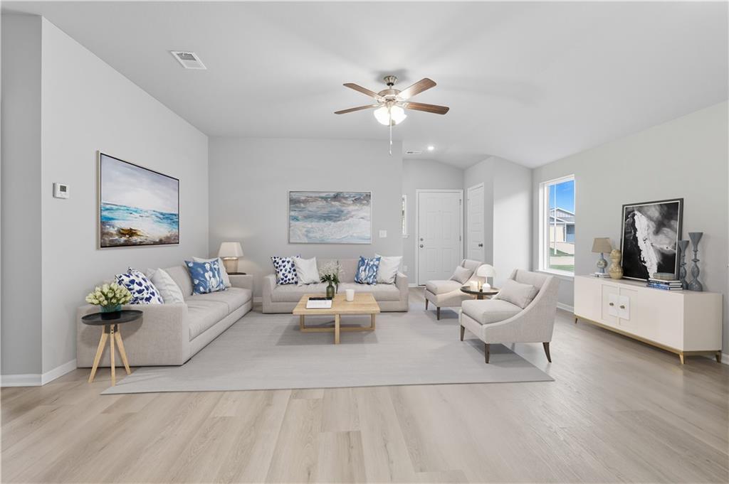 Brand new construction with anticipated completion date end of March. Upgrades including vaulted ceilings; 14x7 patio; extra lighting and ceiling fan bracing and prewire; LVP in all areas but bedrooms and more! Photos are from another home. The selections shown photo are what is going into the home being built. There will be Ice colored quartz in the kitchen. 6' High Wood Privacy fenced yard! Hard to find new construction with 3 bedrooms, 2 baths, 2 car garage home under $300,000!