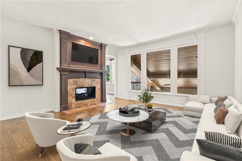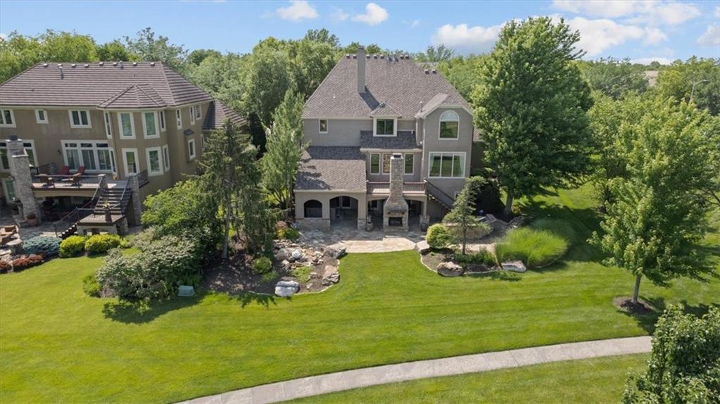 Location unlike any other in Lionsgate! This beautiful 2-story home backs to the neighborhood pool, tennis & basketball courts, playground, and overlooks the picturesque neighborhood lake—offering stunning views from the kitchen, breakfast nook, hearth room, and primary bedroom.Blue Valley's award-winning Lakewood Elementary and Middle Schools are just a safe, 10-minute walk away through quiet neighborhood streets.The kitchen is a chef’s dream with leathered granite and quartzite countertops, a custom-designed island, tile backsplash, slide-out shelving, and top-tier appliances—including a Wolf 4-burner gas cooktop with 24" griddle, Best downdraft hood, Café French-door refrigerator, and Monogram dishwasher.The cozy hearth room features a real stone fireplace with an Amish-made barn beam mantel from the 1880s. The spacious primary suite offers a gas fireplace, luxurious bath with jetted tub, double vanity, and an enormous double-sided walk-in closet.The finished basement is perfect for entertaining with a home theater featuring a drop-down screen, projection system, surround sound, and gaming hookups—ideal for family movie nights or watching big games. Plus, a hidden man-cave or she-shed with built-ins, drawers, and a workbench is tucked inside the oversized storage room.Most windows are energy-efficient, triple-pane premium Thermal King windows. An Andersen sliding glass door was recently added in the basement. The home is virtually soundproof and weatherproof. Step outside to your private backyard retreat featuring a full outdoor kitchen with natural gas grill and Brentwood countertops, a double-sided stone fireplace with water features, flagstone patio, Hot Springs Spa, and a stunning tankless waterfall for tranquil ambiance. Lush landscaping and mature trees surround the property. High-efficiency HVAC and water heaters, plus an extended home warranty through AB May, offer peace of mind. A true resort-style haven you’ll be proud to call home!