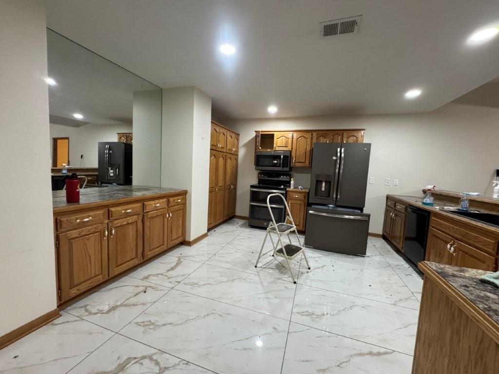 PROFESSIONAL PICTURES COMING SOON!! Have Your Own Park Setting in the City! Experience luxury, privacy, and craftsmanship — all in one incredible home! This property is packed with upgrades and high-end features, including: Fresh Paint throughout New Tile Flooring for a modern touch Newer Upgraded Architectural Roof Rain Bird In-Ground Sprinkler System Pella Windows & Sliding Doors for energy efficiency and beauty Security System for peace of mind 10’ Concrete Basement Walls Structural Steel Beams & 6” Columns allowing wide open spaces without obstruction 3-Car Garage on Main Level + 1-Car Garage on Lower Level Hardwood Entryway Covered Tile Patio — perfect for entertaining Limestone Accent Wall with a Custom-Built Rock Staircase Upgrades Galore! Enjoy the feeling of a private park right in the city — this one-of-a-kind property offers beauty, strength, and style that stand out from the rest!