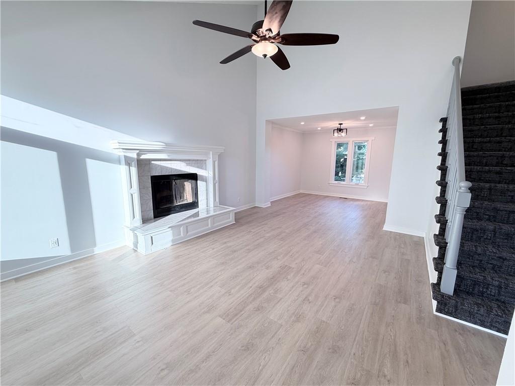 Welcome home to this beautifully renovated 2-story residence offering 4 bedrooms and 3.5 baths! Nearly everything is new - including siding, windows, deck, flooring, ss appliances, fresh exterior and interior paint, and an extended concrete patio perfect for outdoor entertainment. The main level features an open and bright layout ideal for modern living with high vaulted ceiling, fireplace in the living room, formal dinning room and update kitchen with eating breakfast area accessing to the deck through the new glass sliding door. Upstairs, you'll find 3 spacious bedrooms and 2 full baths, including a private primary suite. The finished walkout basement adds even more living space with a 4th bedroom, a full bath, and a versatile bonus room - perfect for a recreation are, family gatherings or guest suite. Conveniently located with easy highway access and just minutes from shops, theaters and restaurants. Move-in ready and full of updates, this home combines style, comfort, and great location!