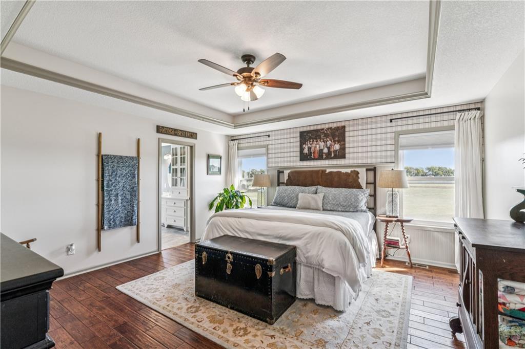 TWO HOMES on a 41.41 ACRES luxurious property. Can be used as a single family, multigenerational, investment and/or income producing. These combined properties offer luxury and versatility over this picturesque land, with it's gorgeous serene pond, a 40X60 barn with lean-to & tack room, Creating the perfect blend of elegance, function, and income-producing potential. *MAIN RESIDENCE is a showcase of craftsmanship and comfort — warm wood floors, a cozy fireplace, and a chef-inspired kitchen designed for entertaining with 3 Bedrooms and a 4th non conformant. Enjoy watching sunsets under the covered front porch or sip coffee on the outside balcony watching the sunrises, taking in sweeping views of open fields. The primary suite and its spa-like luxury bathroom with radiant heated floors, a double vanity and large walk-in shower, large spacious custom closet, make it a relaxing place to escape after a long day.*FULLY FINISHED LOWER LEVEL adds flexibility from watching your favorite TV shows in comfort, along with Tons of storage and storm shelter to go to and a 2nd living space is also included with a fully equipped kitchen, living rm, bedroom, full bathroom, and walk in closet — ideal for guests, extended family, or a private rental suite. *The SECOND PROPERTY includes a beautiful 3-bedroom, 2-bath manufactured residence & extends endless possibilities for multi-generational living, guest accommodations, or passive rental income, whether it be in rent or even the notorious AirBnB, a 2nd full property is definitely an asset. *THE PROPERTY'S NATURAL BEAUTY and thoughtful design, create a sense of retreat & freedom. Whether you’re watching sunsets over the pond, hosting family gatherings, or managing livestock in the barn, this estate offers the space and serenity. *PERFECTLY LOCATED 15 min from Harrisonville & Louisburg, and only 45 min from downtown KC, this property delivers privacy and convenience