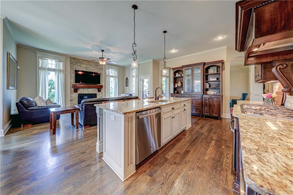 Great opportunity to live in Mills Farm within the top-rated Blue Valley school district. This 5-bedroom/5-bath two-story was quality built by Estes Homes and it shows in the trim work and details throughout. An impressive two-story foyer sets the tone, flanked by a vaulted dining room with wood beams and a first floor office/flex/bedroom next to a ¾ bath. The kitchen checks every box: large walk-in pantry, butler’s pantry with beverage fridge, large island, 5-burner gas cooktop, and front/back staircases for easy flow. Professionally refinished hardwoods on most of first floor and brand-new upgraded carpet (except the flex room). Full stucco exterior with newer paint. Outdoors is built for everyday living: a large covered deck with low-maintenance composite decking, outdoor fireplace with TV hook-up, a generous stamped patio, and a black metal fence. Three total fireplaces add warmth inside and out. The daylight lower level brings in natural light through seven windows and is ready to finish for additional living space. Roof is less than a year old. Enjoy the Mills Farm lifestyle, full of amenities, including: three pools, remodeled clubhouse with workout room, play area, pickleball, tennis courts and sand volleyball!