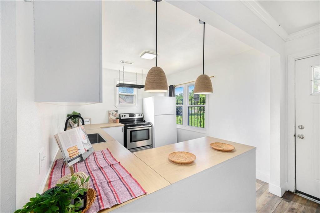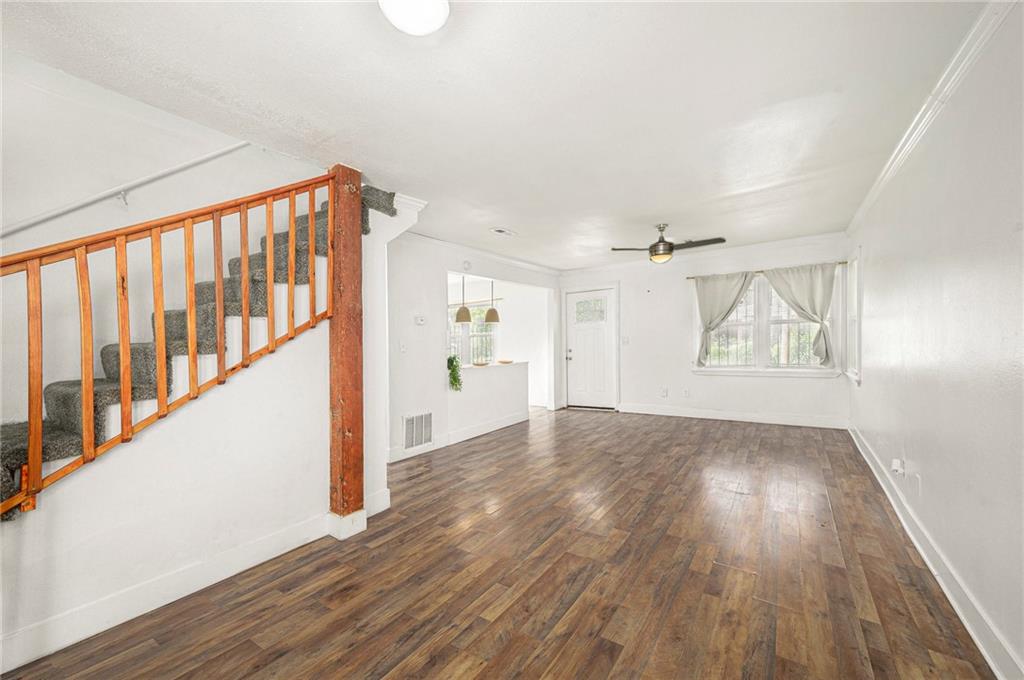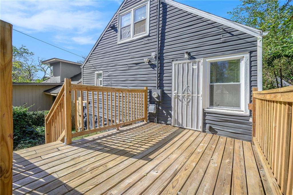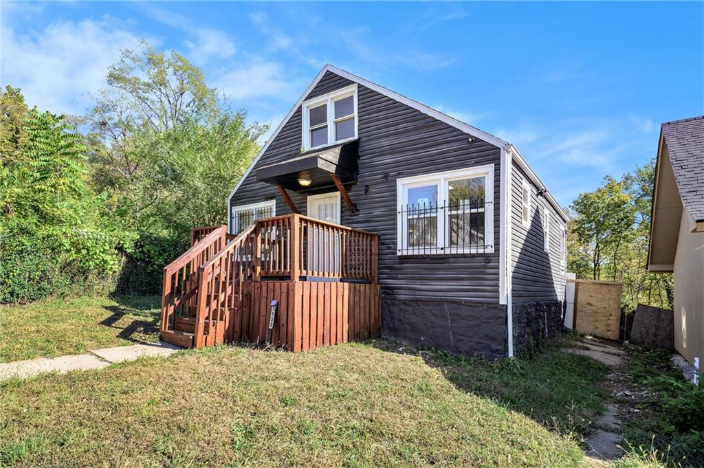 Welcome home to this beautifully semi-renovated 2 bedroom, 1 bath property, ideal for first time homebuyers or savvy investors! Enjoy the open concept living space featuring a modern kitchen with stainless steel appliances, ample cabinetry, and updated flooring throughout. The bright, renovated bathroom showcases clean white finishes and a stylish subway tile shower. Upstairs, the spacious primary bedroom offers comfort and privacy. Step outside to a large backyard with a good sized deck, perfect for relaxing or entertaining. Conveniently located with easy highway access, less than 15 minutes from the Country Club Plaza, Downtown shopping and dining, and close to the VA hospital.