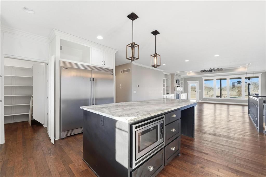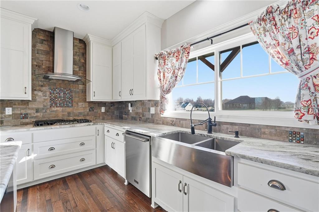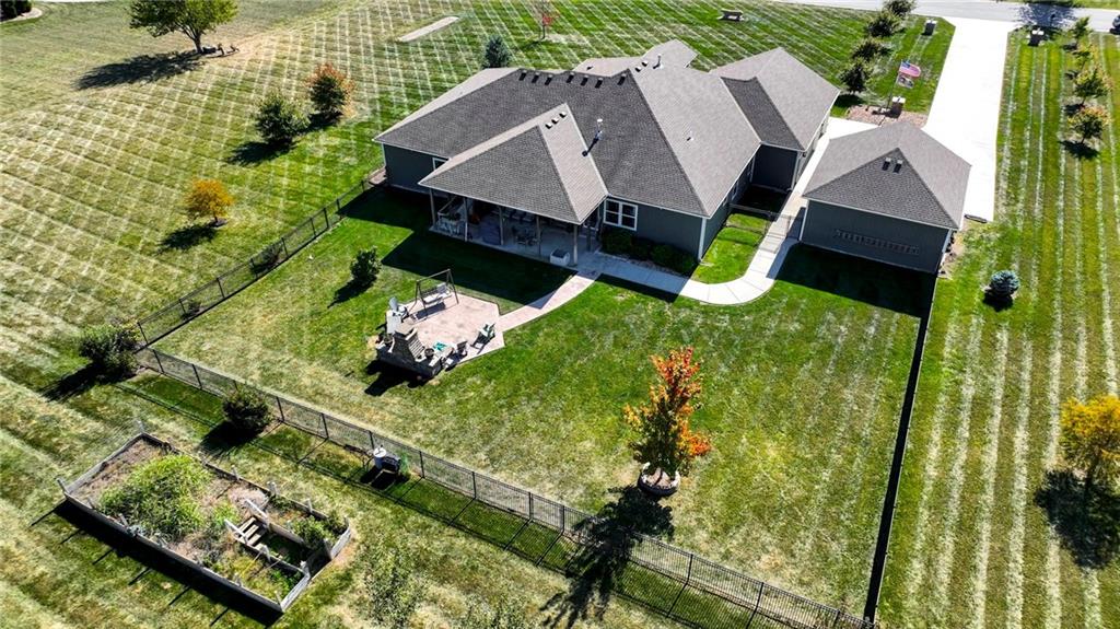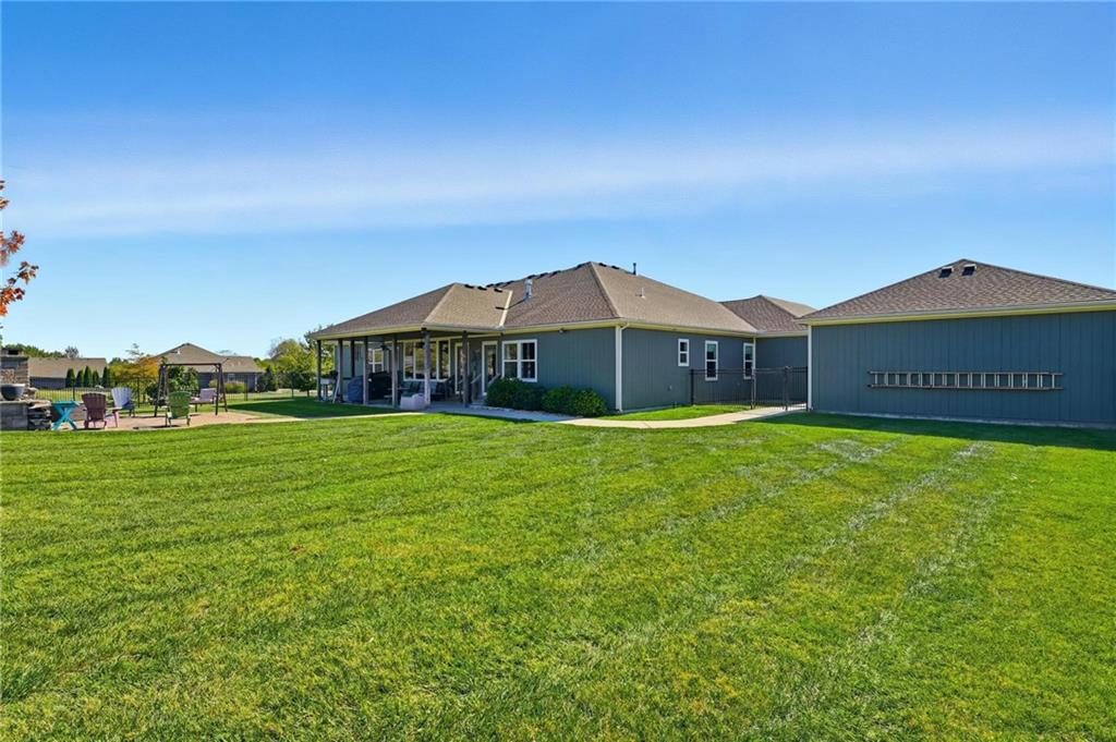 Custom home is zero entry, fully handicap accessible, with elevator! Beautiful ranch has over 3000 sqft main level. Deep covered front porch greets you, front door opens to lovely open plan. Wood floor through entire main level living area, great room with wall of windows overlooking backyard & door out to covered patio, open patio with outdoor fireplace, fenced yard & garden with raised beds & fruit trees. Kitchen is fantastic with huge center island, custom cabinets with pullout pantry storage, large full extend heavy duty drawers, gas cooktop with hood, farmhouse sink, 7x8 walk-in pantry! All halls are 4' wide, 5' turnarounds planned throughout the home, for easy wheelchair accessibility. Large laundry has tons of built ins, room for full size fridge/freezer w/water line. Bedroom or office down hall, primary suite is a true retreat at back corner of home, with door out to patio. Luxury bath has huge fully tiled shower, walk-in closet, dbl vanities & oversized jetted tub. Opposite side of home is additional guest suite with private bath, sitting area or family room with sliding door. 3rd private suite has door out to patio, large closet, Ergolet Luna lift runs on ceiling from bedroom, through bath to wheelchair accessible shower - fully tiled, multiple heads - walk-in closet. Elevator or wide stairway to lower level family room has 2 ceiling fans & ample space for media or games. 2 large bedrooms have walk-in closets & share hall bathroom. HUGE unfinished space remains with additional stub for full bath. Side entry garage is 33'wide, 28'deep, 10' ceilings. 2 car detached garage is 25 x 21, 10' ceiling & stubbed for bathroom. Irrigation system around home.