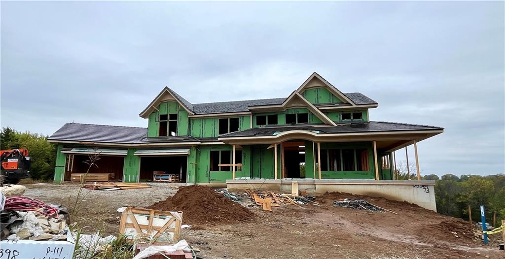 Timeless elegance meets distinguished design in Roeser Home's Artisan Home. Situated on a picturesque treed, walkout lot on a quiet cul-de-sac in Hidden Lake Estates of Cedar Creek. This stunning home is filled with custom finishes inside and out. Impressive front elevation with wrap-around covered porch, custom stained cedar garage doors, tile roof, and brick pavers on front porch. This brand new floor plan features 6 beds, 6 full and 3 half baths, over 6800 sqft finished on three floors with a finished walkout lower level that walks out to a stunning pool in the back. The main level showcases soaring ceilings, a great room adorned with exposed beams, floor-to-ceiling stone fireplace and built-in window seats. The gourmet kitchen features marble tops and backsplash, oversized pantry, glass-front doors with illuminated shelves, a prep kitchen with bar cabinets and additional sink. Formal dining room or cozy eat-in breakfast space behind kitchen. Expansive primary suite on main level is a private oasis complete with as tone facade fireplace accented by ceiling trim details and prefinished white oak hardwood floors. The spa-like primary bath offers heated tile floors, a skylight over the shower, frameless glass enclosures, a freestanding tub, and private laundry connected to walk-in closet. Den/study on main level with built-in shelves and fireplace. Upstairs has an additional living space with a loft featuring custom trim and recessed lighting, multiple bedrooms with zero-entry showers and frameless doors, and a secondary laundry room. The fully finished 12-foot walkout basement, spanning over 2,300 square feet transforms entertainment with built-in bunks in two secondary bedrooms, multiple bathrooms including a convenient pool bath, a workout room, rec room with wet bar and wine room - ideal for entertaining and relaxing. Planned to be showcased on the 2026 KC Artisan Home Tour. Enjoy Cedar Creek amenities and resort-style living.