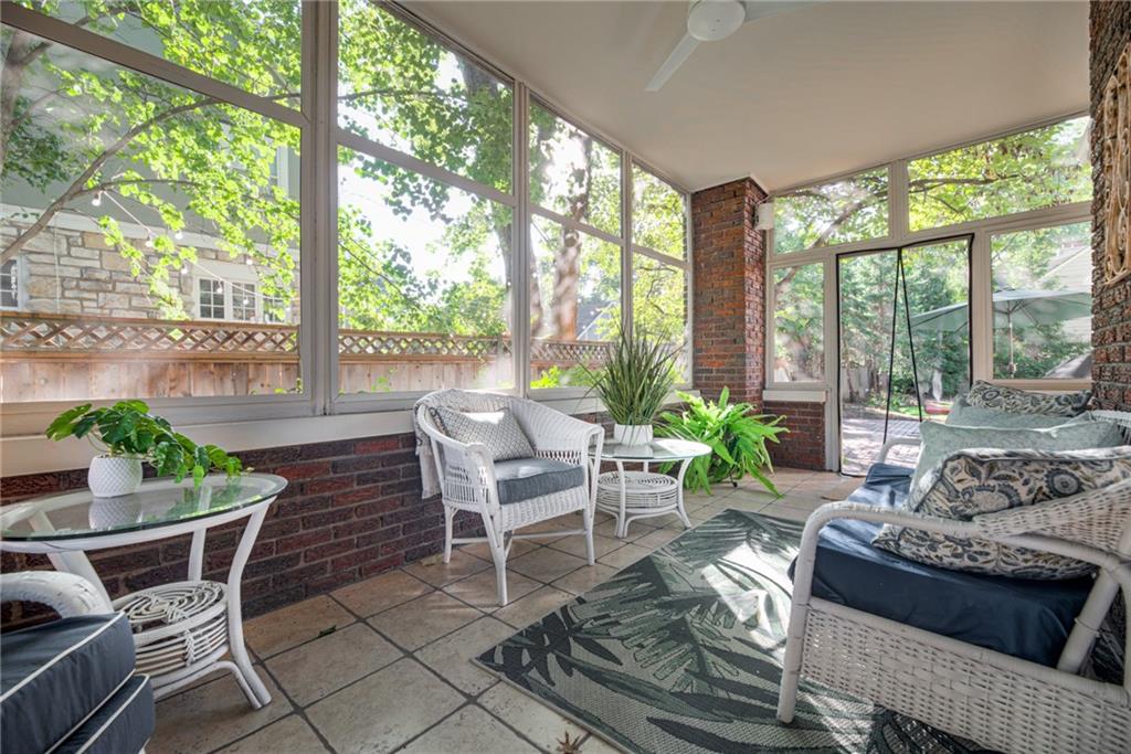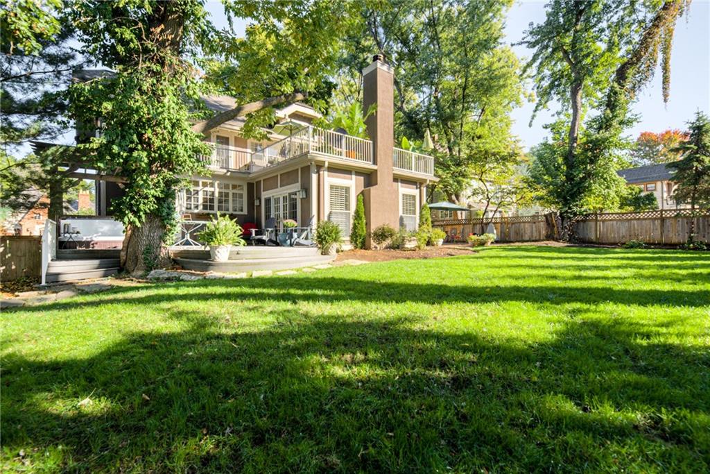 This elegant and spacious home in the highly desired Suncrest neighborhood along the Ward Parkway Corridor is sure to impress. The main floor features spacious family room with cozy gas fireplace & wet bar, plantation shutters, formal living room with wood burn fireplace, refined crown molding, and a sunlit dining room that sets the tone for sophisticated living. The updated kitchen is a true showpiece, offering marble countertops, a Sub-Zero refrigerator, Dacor gas cooktop and stove, an elegant butler’s pantry, and a walk-in pantry centered around a well-situated island. Enjoy both a formal living room with a wood-burning fireplace and a large family room with a gas fireplace, perfect for entertaining or quiet evenings in. The main level also includes a screened-in patio that opens to a spacious deck, plus a brick patio with a Jacuzzi hot tub, surrounded by a beautifully landscaped yard. Upstairs, the primary suite offers a luxurious retreat with custom cabinetry in the walk-through closet, a private coffee bar, and access to a second-floor patio overlooking the backyard. Two additional bedrooms share a cozy TV or sitting room, while the third floor provides a versatile space currently used as an office, complete with a full bath and ample storage—ideal for a guest suite, studio, or additional bedroom. This remarkable home blends classic charm with thoughtful updates and generous indoor and outdoor living spaces.