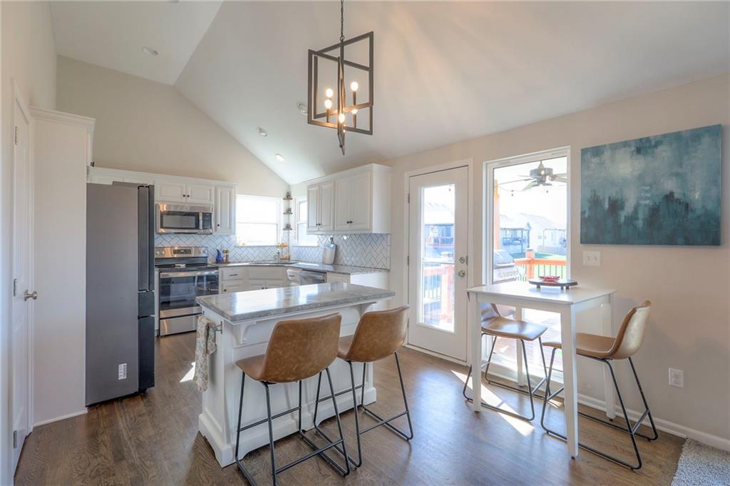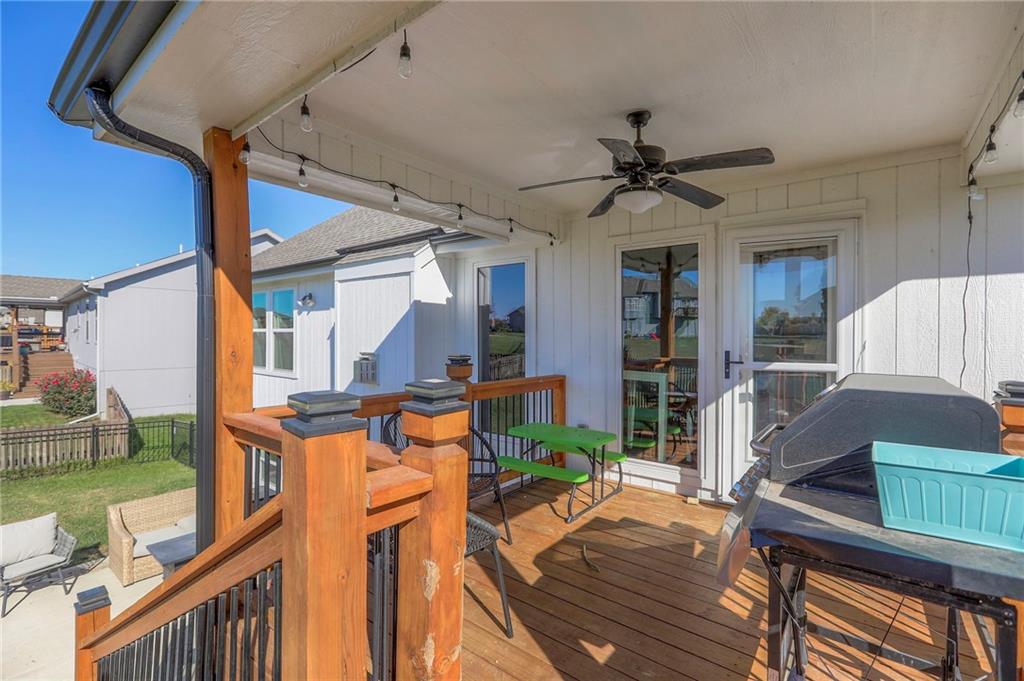 Welcome to this beautiful 3-year-old home full of thoughtful upgrades! With 4 bedrooms and 3 baths, you’ll love the open floor plan, gorgeous glass tile fireplace, and upgraded white cabinetry throughout the home. Step outside from the kitchen to enjoy the deck leading down to the expanded patio and deck steps that were both added in 2023. The backyard has high-end black metal fencing surrounding the yard that’s perfect for relaxing, entertaining, or gardening with the raised garden beds. Inside, you’ll find custom shelving, upgraded lighting, and a freshly painted rec room with an accent wall. The spacious garage offers tons of storage, and the neighborhood features amazing amenities — pool, gym, tennis courts, playground, and fun community events like food trucks and gatherings. Fantastic location near the Airport, Liberty, Gladstone, and Zona Rosa. This home truly blends comfort, style, and community living. Taxes and Room Sizes are estimated.