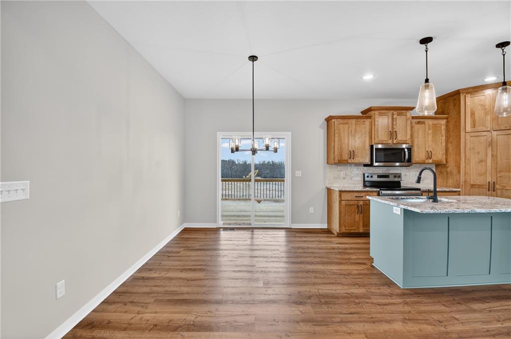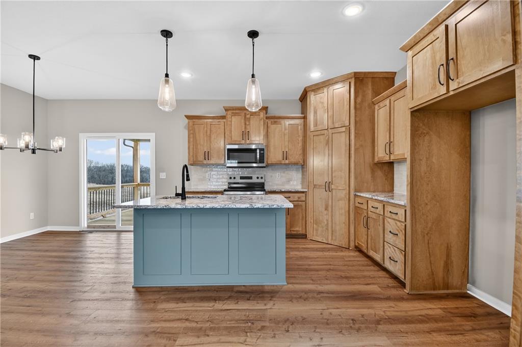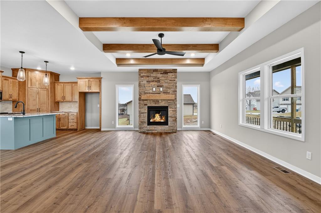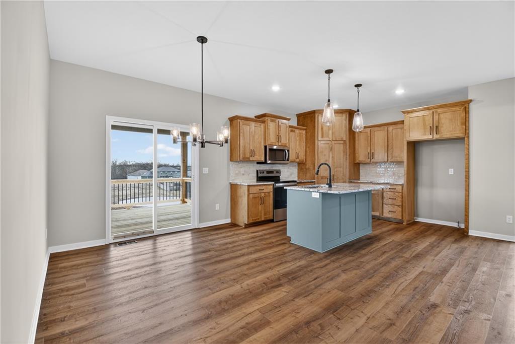 Stunning new construction ranch/reverse 1.5 with walk-out basement and 3-car garage! This 4-bedroom, 3-bath home features an open-concept main level with stained cabinetry, spacious dining area, and inviting living room with fireplace and custom ceiling detail. Convenient mudroom with boot bench and main-level laundry add everyday functionality to this home! Enjoy enhanced accessibility and thoughtful design with all main-level interior doors that are 36” wide, including the primary bedroom, bathroom, and closet doors! The primary suite includes a stunning accent wall, dual walk-in closets, and a beautifully tiled walk-in shower. The Finished lower level features two additional bedrooms, full bath, large family room, and walk-out to covered patio. Even with the additional living space you can benefit from the ample storage spaces offered in the basement! Do not miss your opportunity to enjoy quality craftsmanship and modern finishes inside and out with this new construction home!