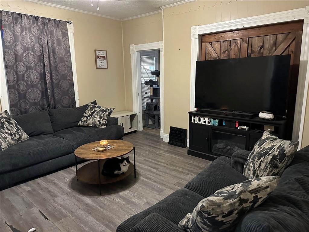 Cute starter home in the quaint farming community of Hardin! Located a straight shot, 40 minute drive from Kansas City, this home offers convenience and affordability. Home features a large main level primary bedroom and main level bathroom and laundry and more. Detach garage has concrete floors and electric.