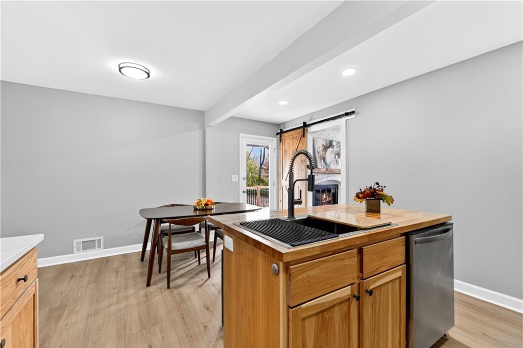 FRESH, MODERN, and made for living well. This fully updated reverse ranch checks ALL the boxes—and then some. With 5 true bedrooms plus a 6th non-conforming bedroom, there’s room for everyone to spread out, settle in, and stay awhile. Step inside to an open-concept main level designed for connection, comfort, and unforgettable gatherings. The kitchen shines with brand-new custom cabinetry and a statement island—your hub for holiday baking, Sunday brunch, or midnight snacks. The dining and living flow seamlessly, creating a welcoming space framed by warm finishes and natural light. Step out to enjoy peaceful moments overlooking the backyard from the new elevated deck. Just off the kitchen, retreat to your private primary suite—tucked away from the rest of the home for total tranquility. Cozy up by your fireplace, and unwind in the new spa-style en suite with stylish tile surround. The main level continues with three additional spacious bedrooms and a beautifully updated full bath. Head downstairs to discover even more living space—a dedicated media area for movie nights, a large bedroom, a full bathroom and an additional expansive family room with abundant natural light that could be used as a bonus non-conforming bedroom perfect for guests or even enough space for a home studio, the possibilities are endless! This room also walks out to a covered patio with recessed lighting, offering your own secluded outdoor hangout for breezy evenings and backyard lounging. With thoughtful updates, a brand new roof, flexible living spaces, and plenty of room to live, work, and play, this home delivers modern comfort, peace of mind and effortless versatility for every lifestyle while offering privacy for the whole family! With remarkably quick access to highways in a convenient location next to the heart of Kansas City's sport action, you won't want to let this one get away! This home looks even better in person! Schedule a showing today!