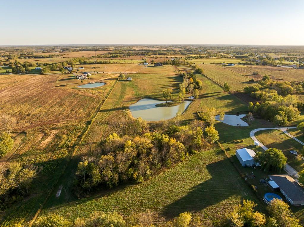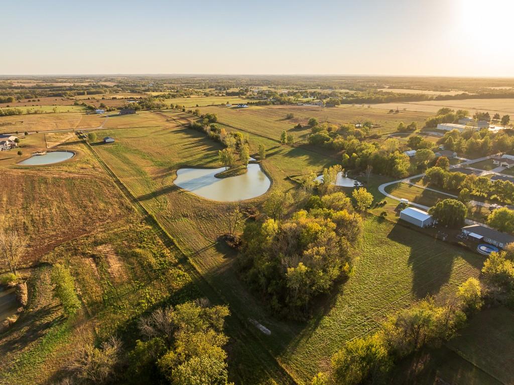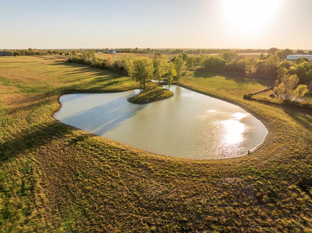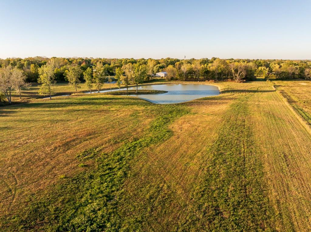Located at the end of a dead end road just beyond the blacktop, on the south side of Garden City is this remarkable 21-acre tract. Mostly open, with good grass and perimeter fence, the ground is set up for pasture and/or hay, and with established water and a 30x40 shed, it would make an incredible hobby farm. The stunning 1-½-acre pond was cleaned out in 2024, and a long peninsula with mature shade trees extends into it, offering a gorgeous setting. Wooded areas include a long wooded draw and small woodlot north of the pond. Power and water utilities are available at the road, and a home could be positioned with spectacular views. The property was recently surveyed. It is just 35 minutes from Kansas City, and is located within the Sherwood School District.