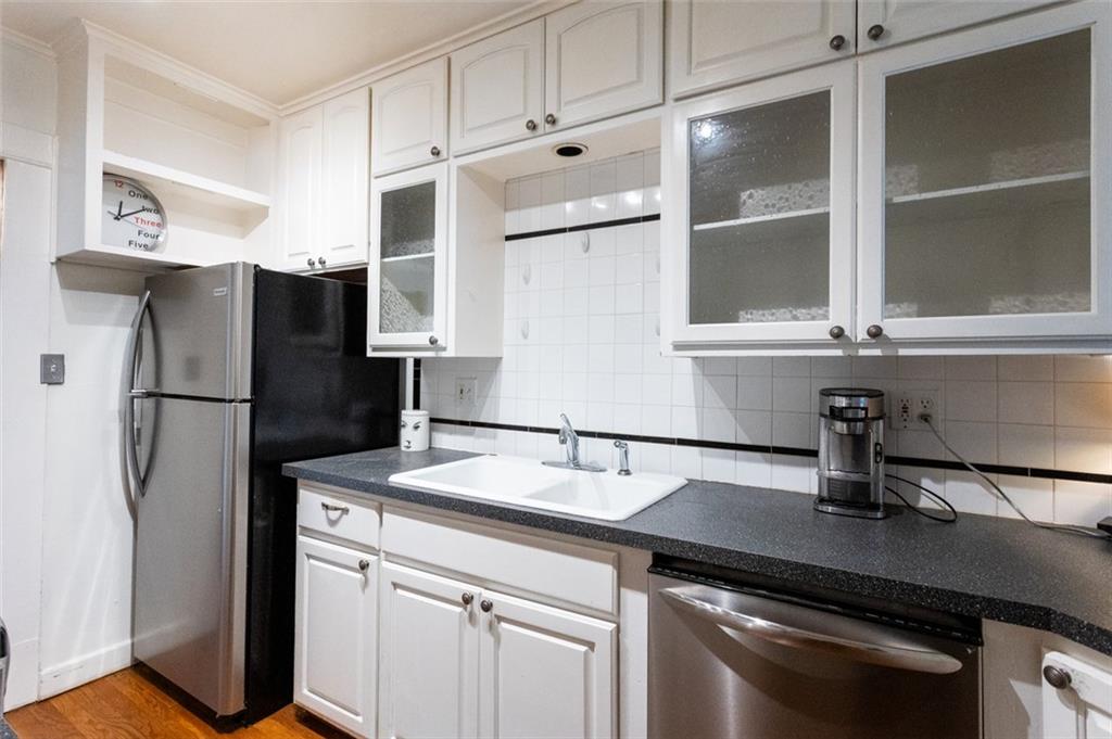 Located one and a half blocks from the heart of 39th Street’s Restaurant Row, you’ll walk to restaurants, coffee and entertainment from this co-op condominium. It's also a 15 minute walk to Kansas University Medical Center or Roanoke Park that has a volleyball court and playground. This 1,000 (m/l) square foot unit is located on the second floor, with two bedrooms and one full bathroom in a quiet and serene building that is completely occupied. The space is filled with windows and natural light, original hardwood floors, doors and decorative built-ins. The kitchen features white cupboards and stainless steel appliances with durable laminate countertops. The fireplace hearth and mantle in the living room adds charm and comes with original cabinets with decorative glass doors for extra storage. The covered balcony porch is big enough for an entire set of outdoor furniture and comes with a ceiling fan and light, as well as screws for a hanging swing, chairs or hammock. Street parking is available. This is a fantastic opportunity to be close to everything Midtown has to offer.