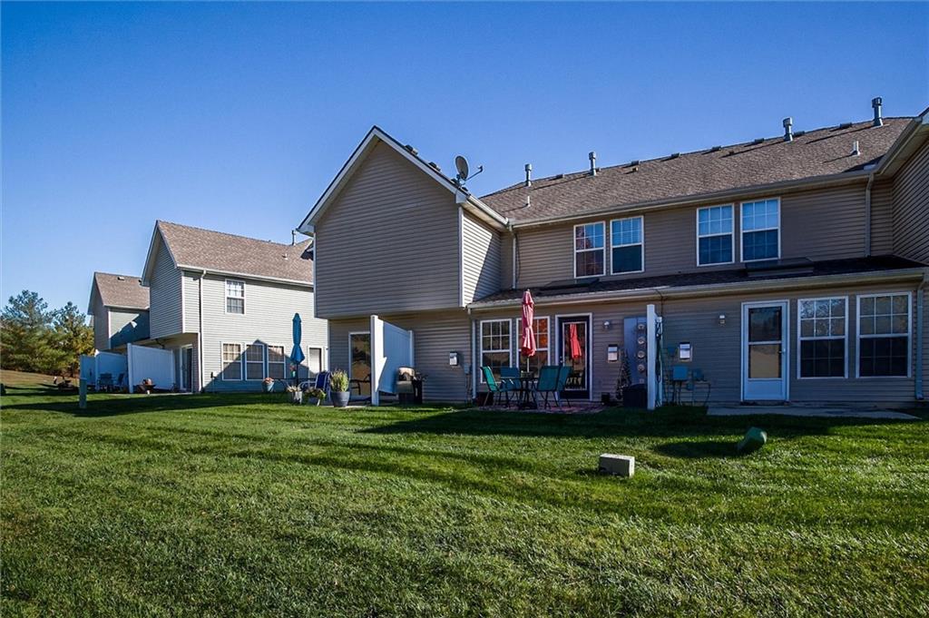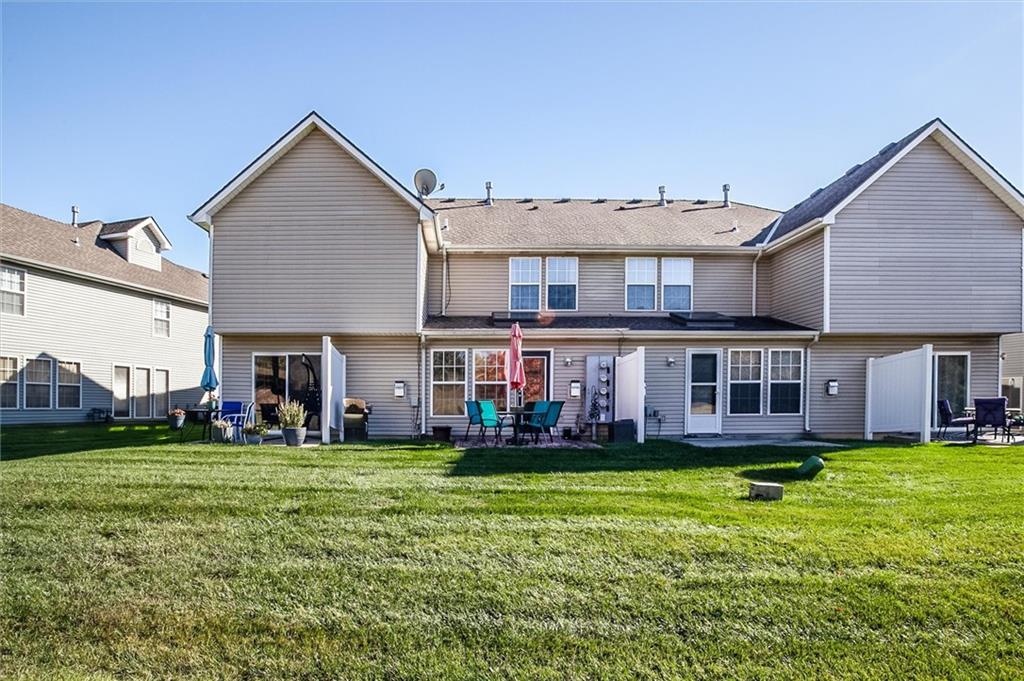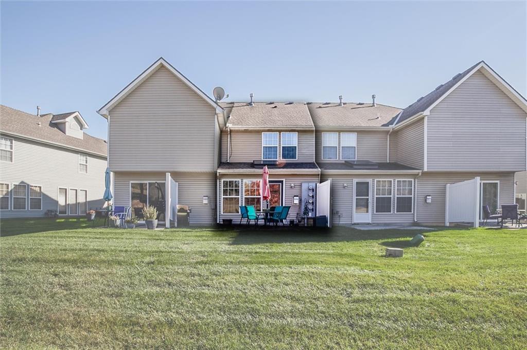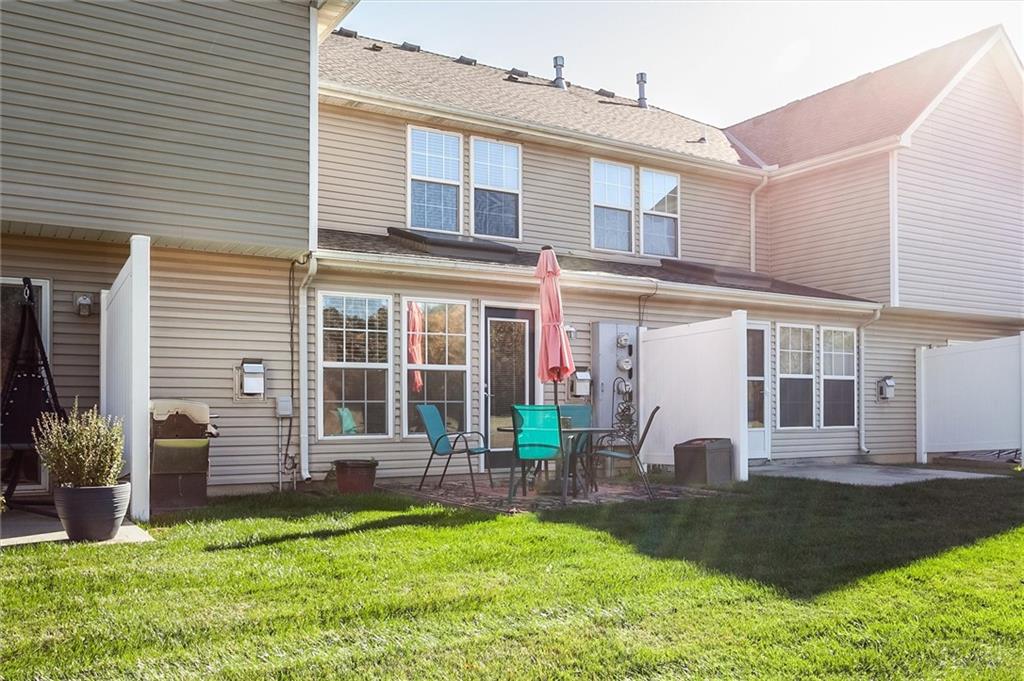Welcome Home to this updated Townhome in Brighton Woods. This spacious, well designed home will make you fall in love as soon as you walk thru the door. The kitchen space is a Chef's dream with all the modern Stainless steel appliances, including the backsplash, and the amazing kitchen faucet. The counters are a gorgeous black quartz and the light fixtures add an amazing flair to the wide open space. Check out the HUGE skylight in the living room! It is SO bright and cheery! This property backs to luscious greenspace that gives that "I am in the country" vibe. The two bedrooms upstairs both have a large walkin closet and their own private bathroom. The property is equiped with a sprinkler system. All appliances stay, the mounted televisions all stay, the washer and dryer stay and the outside gas grill and propane tank stay with the home