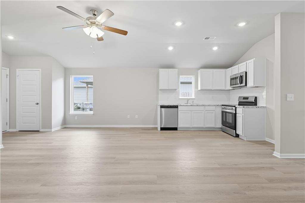 The Keswick plan is a one-story ranch-style home (slab on grade - no basement) features an open floor plan with 3 bedrooms, 2 bathrooms, and an expansive family room. Also enjoy a cozy breakfast/dining area, and a beautiful kitchen equipped with energy-efficient stainless-steel appliances, generous counter space, and roomy pantry.