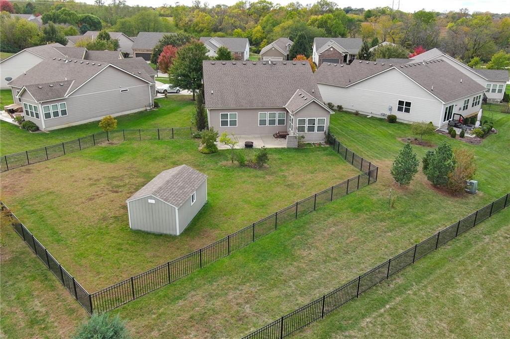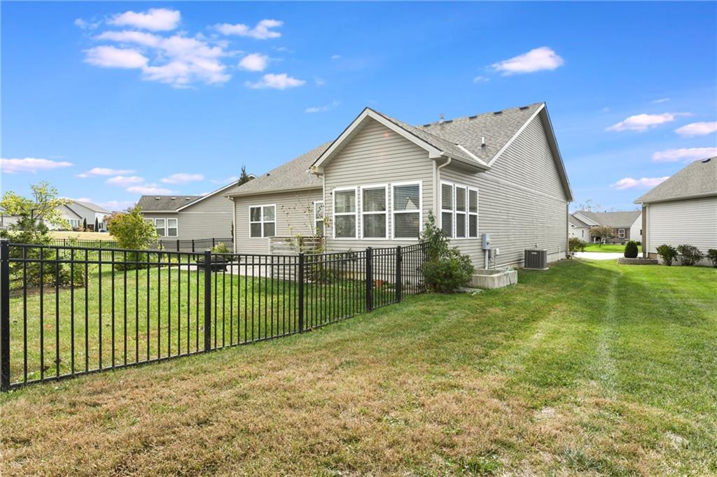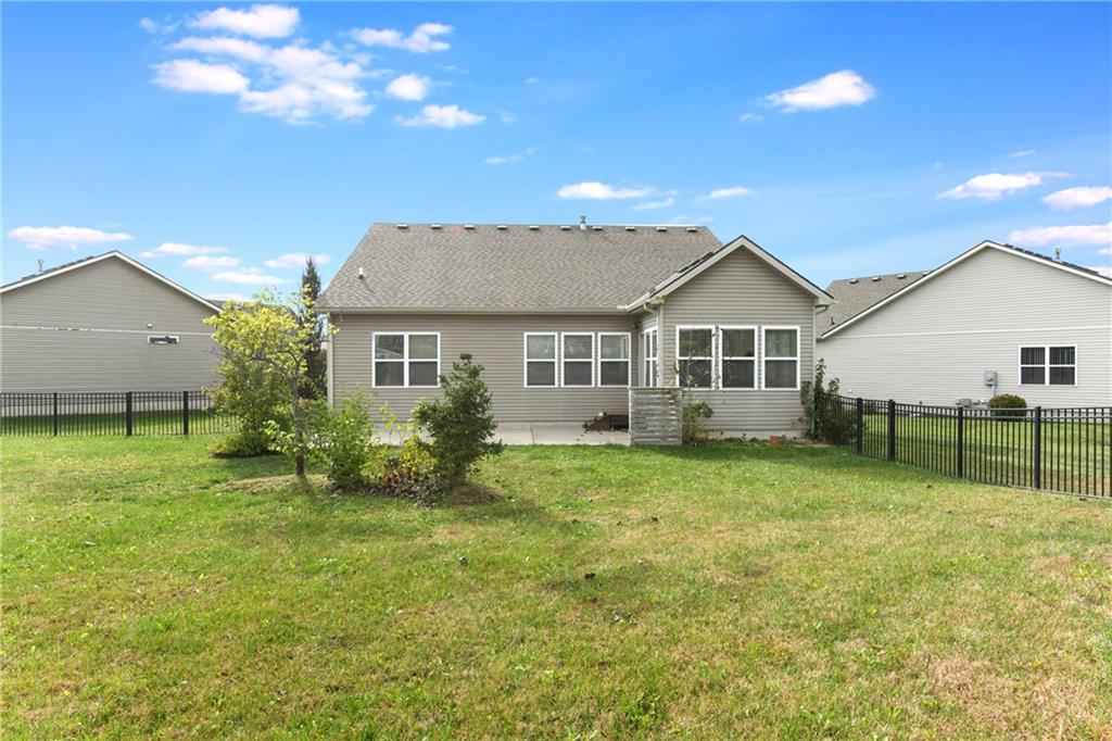True ranch (36" doors for accessibility) in a great location! This home has an open flr plan and backs to the walking trails and is a short walk to the community pool, club house, pickle bar courts and playground area. The back yard is fenced, has an oversized patio and nice shed. There is a wonderful sunroom off the kitchen...great for entertaining or relaxing with loads of natural light. All appl remain w/ the home including the s/s refrigerator. A nice walk-in pantry off the garage is perfect for ease of grocery put away. The finished lower level has a family room, 4th bedroom and full bath. The unfinished area is huge (60X23) for storage or future additional finished area. The home is equipped with a charging station for your electric vehicle. Plus, an in-ground sprinkler system. Come check it out.