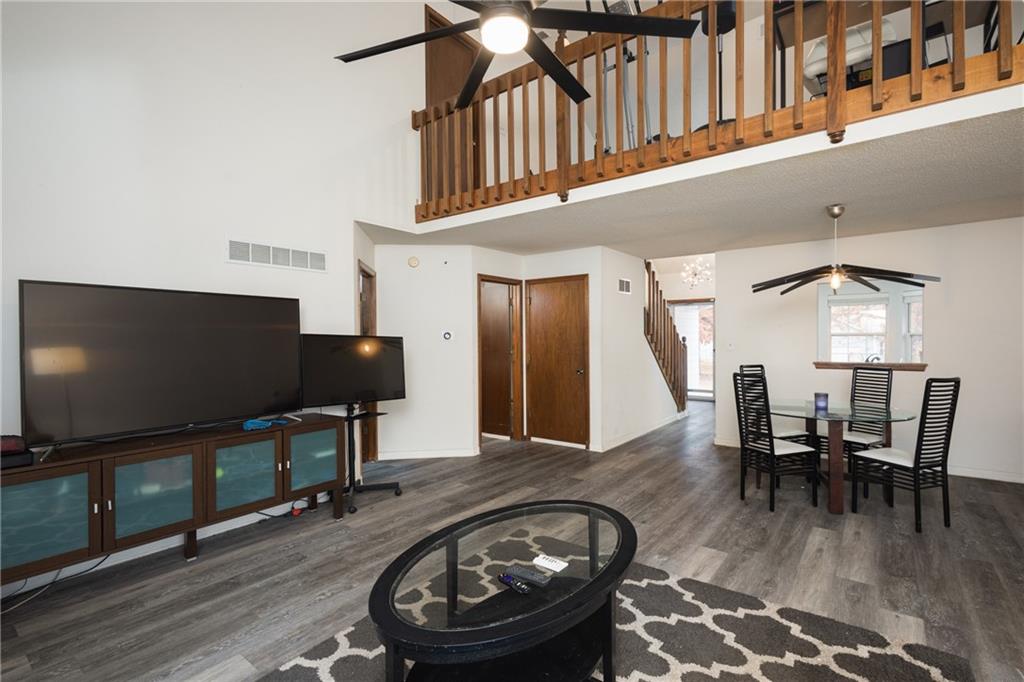 Beautiful ranch-style villa located in the highly sought-after Country Meadows North community. This home offers vaulted ceilings, an open eat-in kitchen, and an exceptionally large living room with a cozy fireplace. The main-level primary bedroom is spacious and features an en-suite bathroom with plenty of storage. All areas of the main level are easily accessible. The upper level includes an additional room with a large walk in closet, providing excellent guest, office or storage space. The finished lower level offers a versatile layout with an additional living area—perfect for entertaining, a home office, playroom, or hobby space—along with another full bathroom. A little personal touch and this home is a perfect opportunity to build equity. Enjoy a private deck backing to a wooded area, offering peace and privacy. Conveniently located near shopping, restaurants, and major highways for easy access to everything you need.
