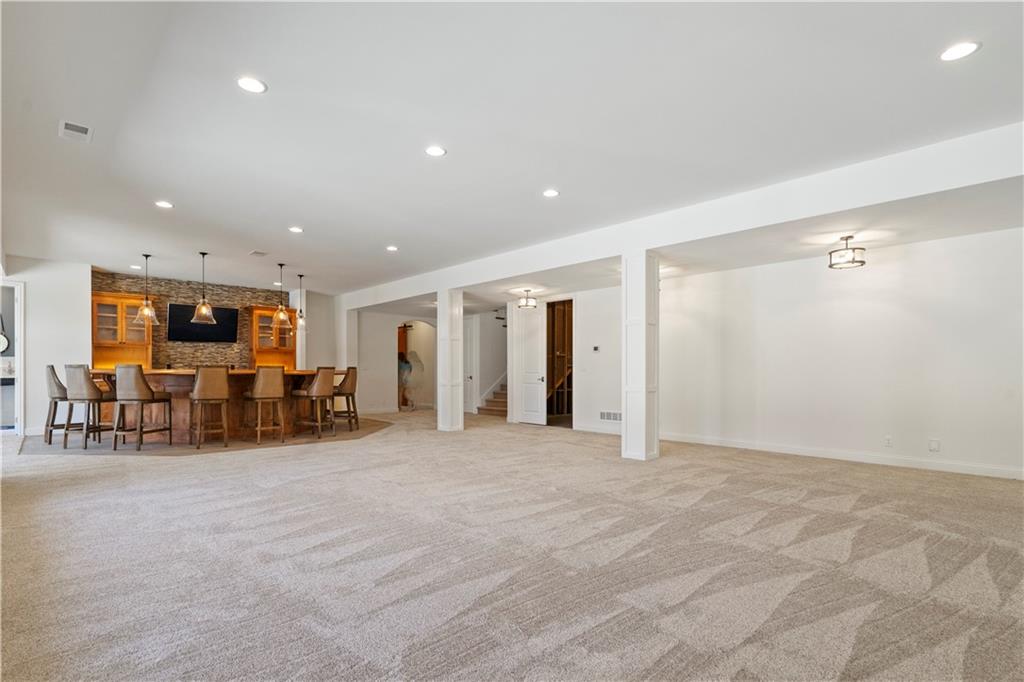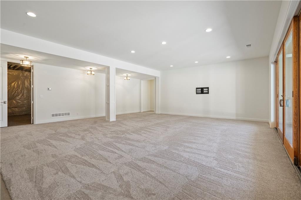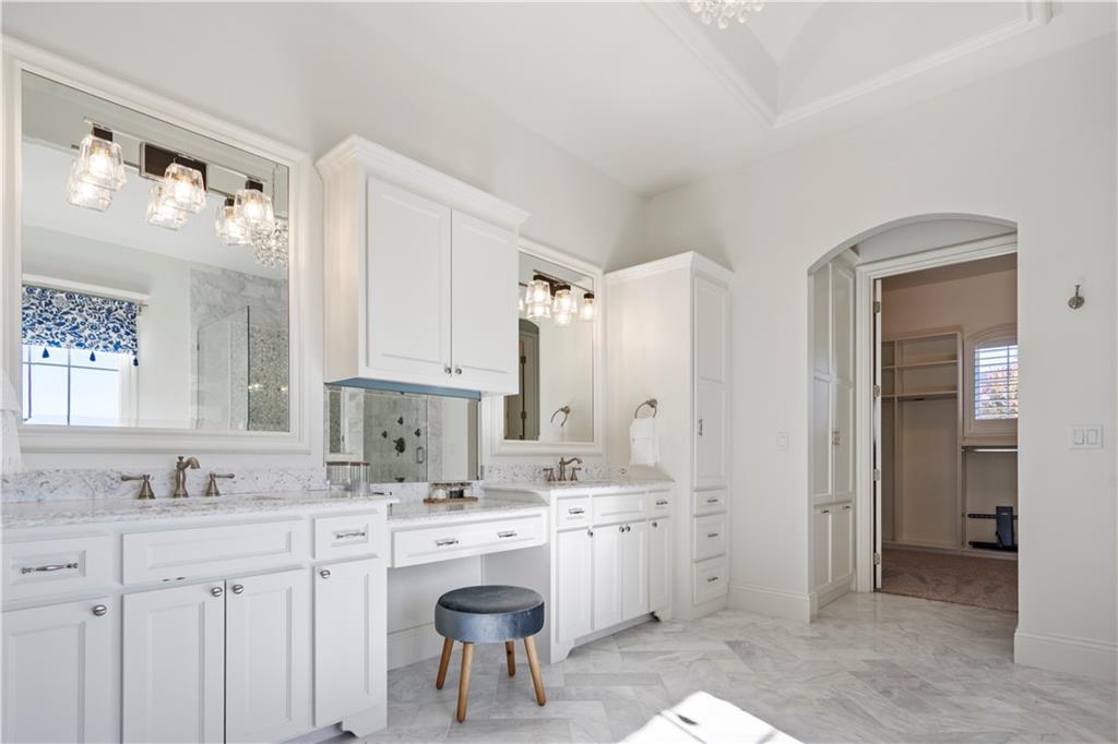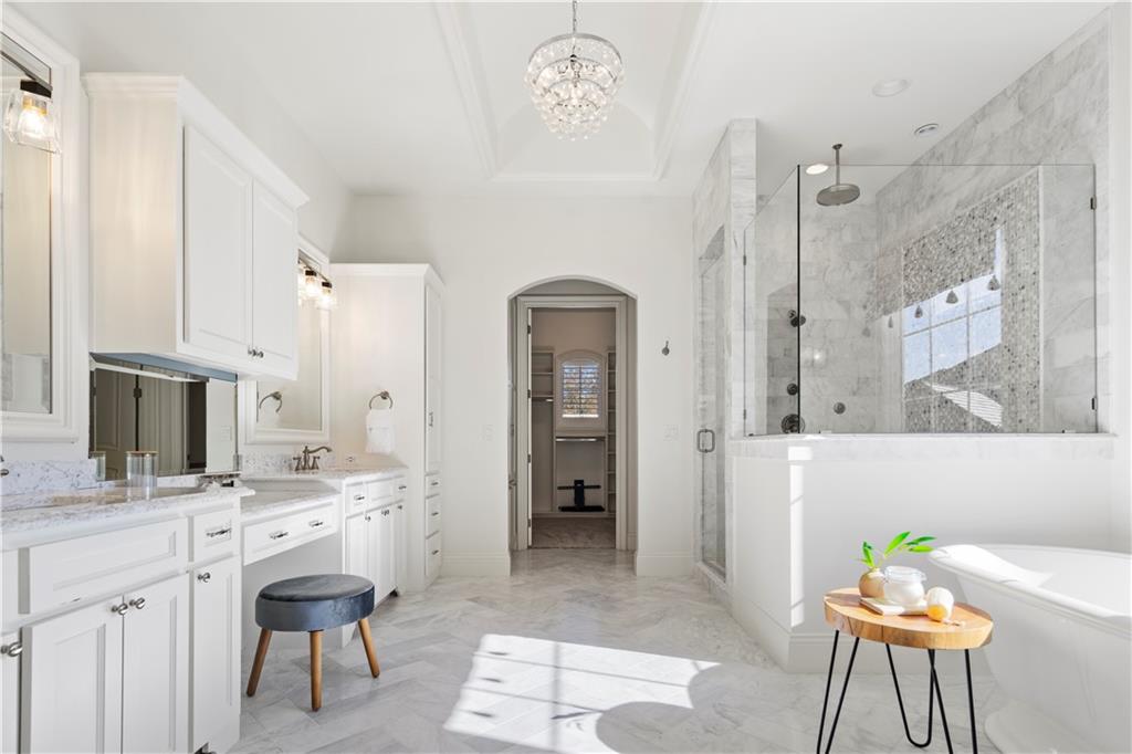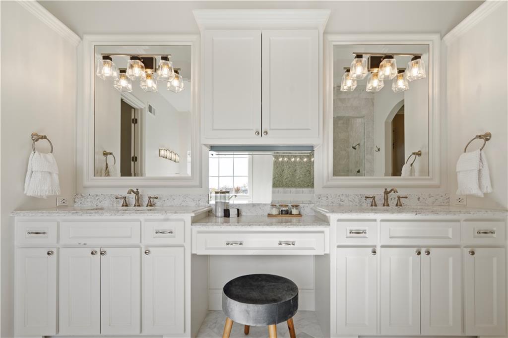 Fall head over heels for this stunning luxury reverse 1.5 story in The Farms at Garnet Hill! Impressive from the start--thoughtful landscaping, circle drive and a 5 car garage. Custom build by Cecil & Ray design team. This elegant home blends timeless design with resort-style living. Step inside to soaring ceilings, rich hardwoods and expansive windows showcasing beautiful views of the private backyard oasis. The open-concept main level features a great room with stone floor to ceiling fireplace and built-ins flowing seamlessly into the gourmet kitchen. Please any chef and entertain in style in this expansive kitchen featuring custom cabinetry, large center eat-in island, walk-in butler's pantry and high-end stainless steel appliances. Adjacent dining and breakfast areas! Easily move the experience onto the lanai with multiple access points for convenience. Spacious primary suite offers a spa-inspired bath including double vanity, soaking tub, large walk-in shower and huge walk-in closet conveniently adjacent to laundry room. Second main-floor bedroom or office with built-ins adds flexibility. Option to take the stairs or use the elevator to the beautifully finished walk-out basement. Here the entertainer’s dream continues with a family room, rec area, gorgeous wet bar, tiered media room, two additional bedrooms each with their own en-suite bath and walk-in closets and bonus pool bathroom with changing room and 2nd laundry. Walk-out access to your in-ground resort styled pool, covered patio, sun deck and lush landscaping providing privacy. Impeccably maintained, thoughtfully designed and located in one of Overland Park’s most desirable neighborhoods—this is luxury living at its finest! WELCOME HOME!