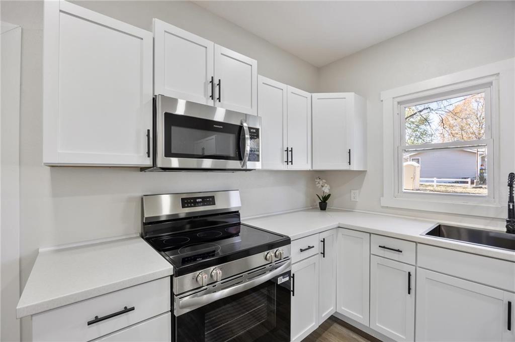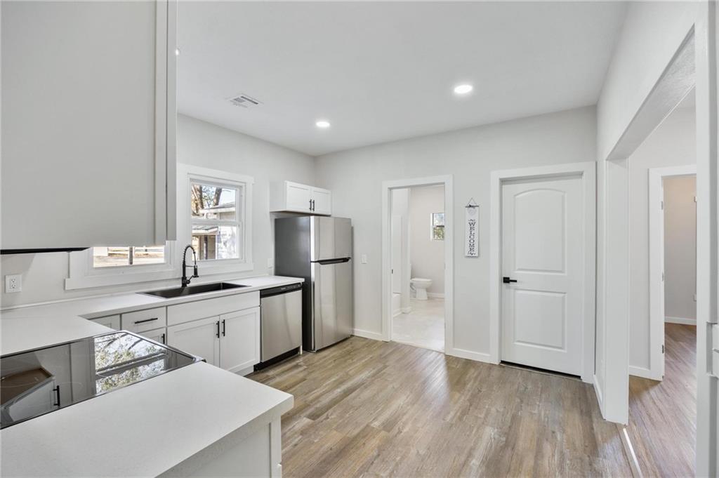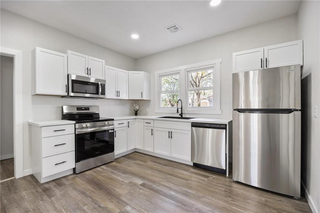 Discover this remodeled 3-bedroom, 2-bath home that’s move-in ready! An adorable front porch welcomes you to the residence and sets the tone for the interior that is bright and inviting. As you enter the front door, the open concept layout highlights the large living spaces and the brand new kitchen with crisp white shaker style cabinetry and new stainless appliances. The interior boasts neutral paint colors and coordinating LVP flooring throughout, complemented by stylish matte black fixtures for a modern touch. The master suite is conveniently located on one side of the home, while the other two bedrooms and a spacious second full bath are situated on the opposite side, offering privacy and comfort for all. You'll appreciate the practical laundry and mudroom located just inside the back door, making it easy to keep things tidy. The property also includes a carport with additional storage in the backyard, providing extra convenience. This home is designed for comfortable living and is ready for you to make it your own. Schedule a showing today!