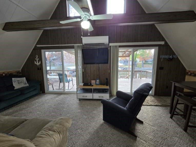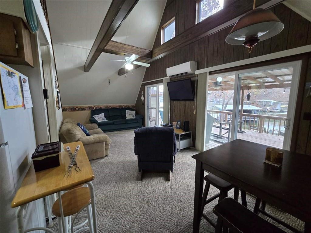 Charming A-Frame Lakefront Retreat – Ivy Bend, Mile Marker 58 Escape to lake life at this inviting A-frame home perfectly situated on the 58-mile marker at Ivy Bend. This lakefront property offers everything you need for a relaxing getaway or a full-time residence. The home features 3 bedrooms and 1.5 bathrooms, with an open and cozy layout ideal for entertaining and family gatherings. One of the bedrooms and the half bath are located in a separate tiny house/shed with its own private entrance, offering additional privacy for guests or potential rental use. Step outside to a spacious deck overlooking the water, perfect for morning coffee or sunset views. Enjoy evenings around the fire pit, creating memories under the stars. A private boat dock provides easy lake access for boating, fishing, and swimming. Whether you're looking for a weekend retreat or a year-round home, this property combines comfort, charm, and the beauty of the Lake of the Ozarks lifestyle.