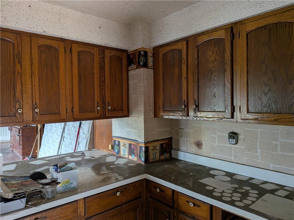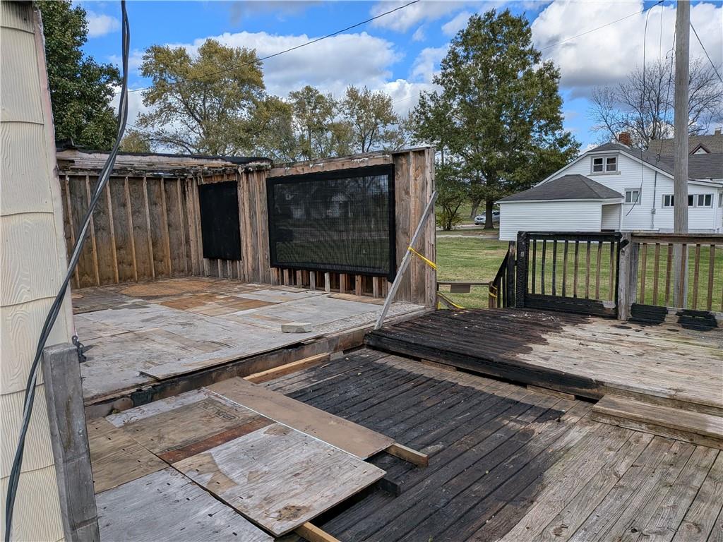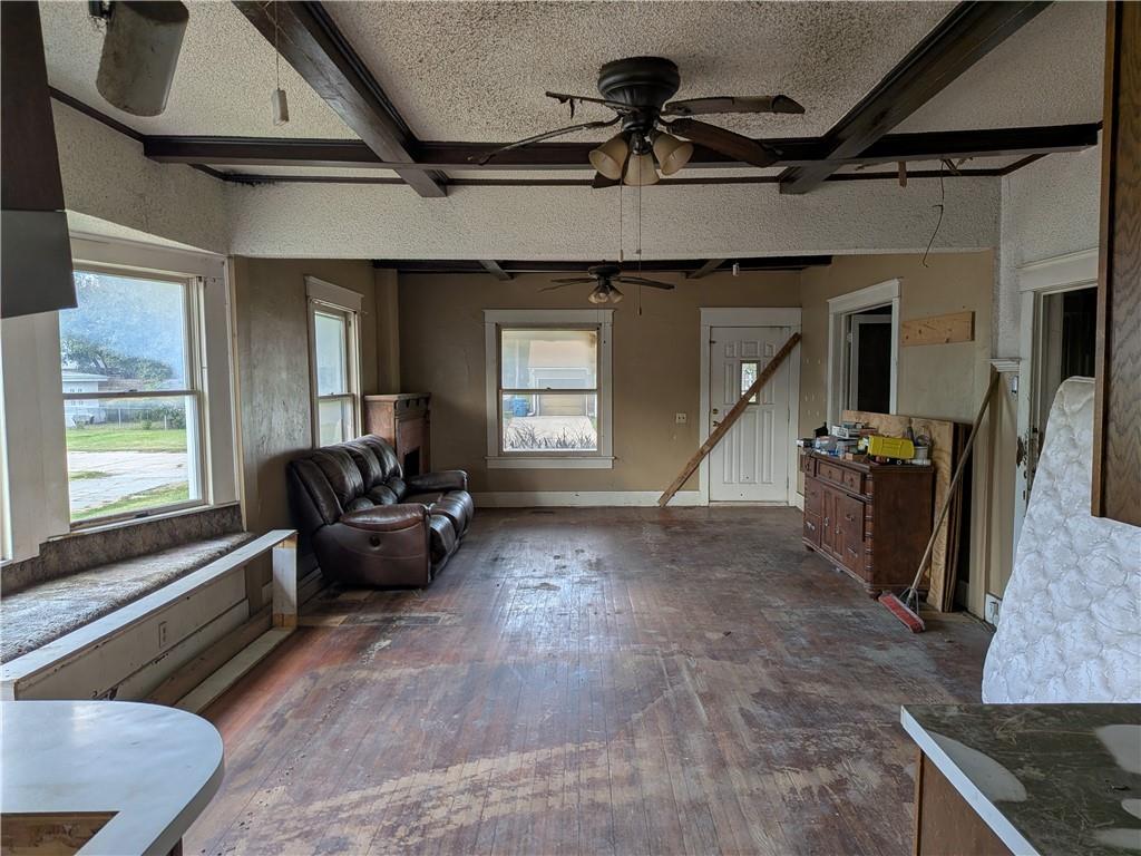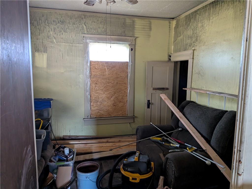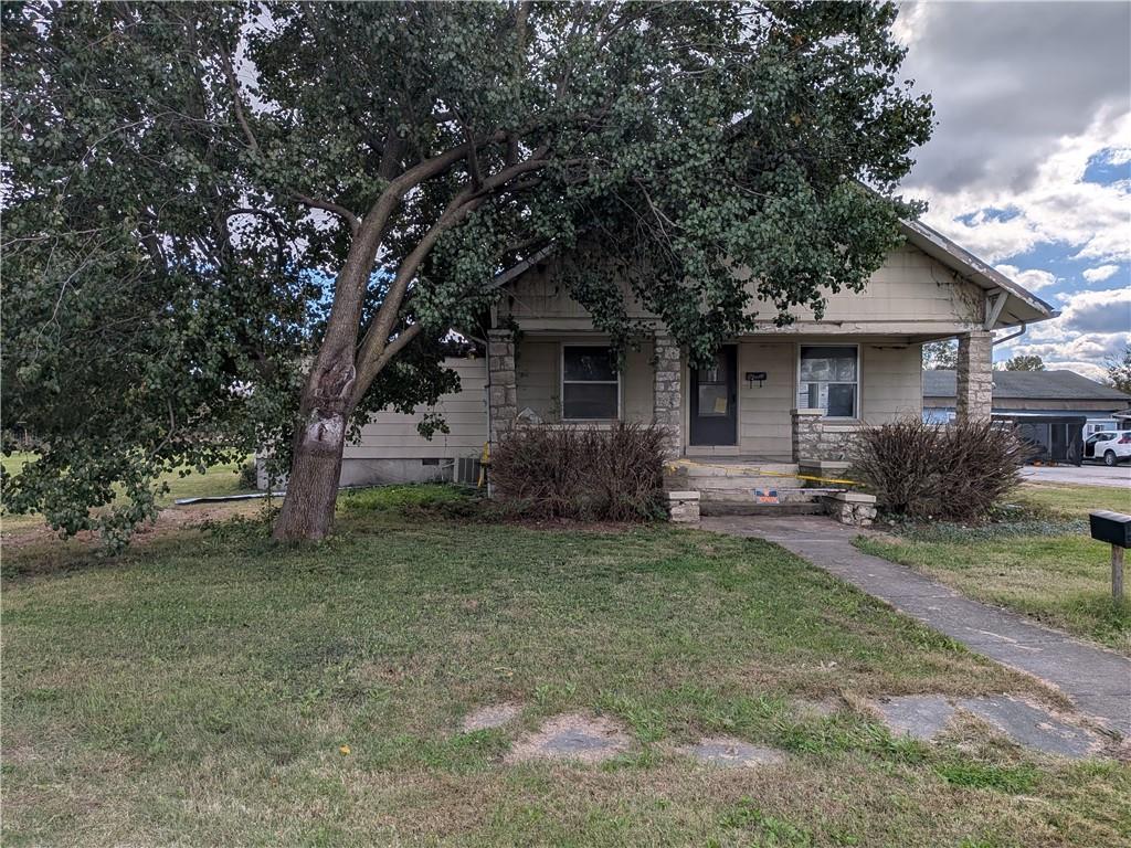 Prime location for this fixer upper. Right off the highway and only 35 minutes to Olathe or south Overland Park. Get the small town feel but be close to the metro area. Right next door is a community garden area with a park like setting. There is a detached garage and deck with a gazebo. Property will need major work due to fire damage and is being sold AS IS. A bare bones canvas waiting for your vision. A great community for your next flip or rental. Motivated seller, bring offers.