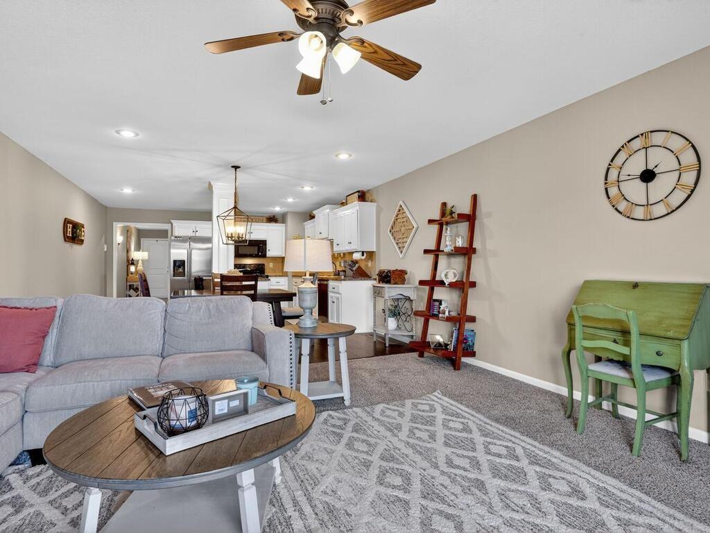 Tuscany Hills Townhome! This a 2+ Bedroom, 3.5 Bath home, 1 car garage & finished walkout lower level is spacious & very open! Great main level for everyday living. Entry features a Craftsman Front Door w/Storm Door, Ring Doorbell, Coat Closet, wall sconces, & Wood Plank Floors. Great Room features a Corner Gas Fireplace w/ceramic tile surround, painted mantle & hearth, Windows w/blinds, Ceiling Fan, & a slider door to the Deck. The Eat-In Kitchen opens to Dining for meals & hosting. Details include Pantry, painted cabinets, ceramic tile backsplash, 50/50 Stainless Sink, Pull-Out Trash, Cookie Sheet Cabinet, Eat-Up Island, Pendant Lights, & Appliances:Electric Range, Built-In Microwave & Stainless Dishwasher. A convenient Half Bath serves the main level. Upstairs offers 2 large suites! Primary Bedroom Suite offers a tray ceiling, ceiling fan, blackout blind, & a Walk-In Closet. Primary Bathroom includes a double sink vanity, w/ cabinet, Shower over Tub, & Linen Closet. The Front Bedroom Suite adds a accent Ceiling, large Closet w/attic access, & an adjacent Full Bath: Shower, Vanity w/Cabinet, tile floors! Laundry is on the bedroom level! Lower Level expands options as a large Family Room or potential 3rd Suite w/Full Bath, Walk-In Closet, & a slider to the Back Patio w/privacy wall. Plus Storage areas! Mechanical notes: brand-new Rheem Furnace, Aprilaire humidifier, AO Smith 40-gal water heater, radon mitigation, & a designated outlet circuit. Outdoor spaces include a Composite Deck w/ drink rail & aluminum spindles that backs to green space & woods, plus a private Back Patio. The Front-Entry Garage provides an insulated Door w/opener, shelving, floor drain, window, painted floor, & finished walls & ceiling. HOA supports low-maintenance living. Served by North Kansas City School District. Everyday needs are close by across the Northland including coffee, groceries, healthcare clinics, pharmacies, fitness centers, banking, & casual dining, w/quick access to 291 HWY.