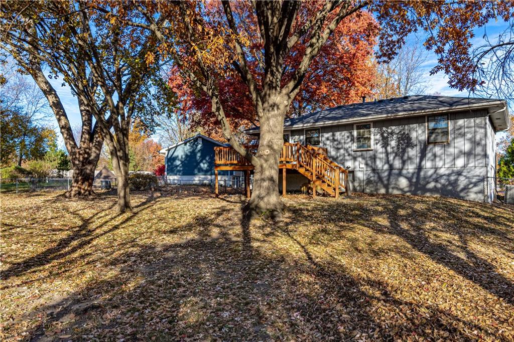 Split-entry home (1,018 sq ft) in Lee’s Summit on a quiet pseudo-cul-de-sac (elbow) street. 3 Bedroom, 1 Bath, 2-Car Garage, 1,018 Sq Ft, 0.239 Acre Lot, Built in 1978. Features include wood siding with brick accents, composition shingle roof, forced air heat, concrete foundation, partially-finished basement (an additional 317 sq ft), open porch, and newly refurbished wood deck. Located in the Lee’s Summit R-7 School District: Prairie View Elementary, East Trails Middle School, and Lee’s Summit High School. Just steps from Miller J. Fields Park, featuring a splash pad, tennis courts, playground, walking trail, and open green space. Minutes to downtown Lee’s Summit, shopping, dining, and commuter routes via 291 and 50 Highways. 1205 SE 5th Street, Lee’s Summit, MO 64063.