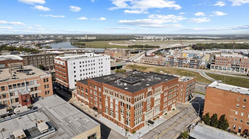 Modern amenities, 3rd-floor views, plus the entire downtown scene as your playground! This adorable condo packs big style, authentic urban accents, and a whole lot of charisma into a historic 1800s building conveniently located between the River Market and the P&L District. We are talking light, height, and exposed elements: brick, timber beams, piping, and a polished tongue-and-groove ceiling, all of which play perfectly against the sharp upgrades and the Brazilian Walnut floors that flow throughout. While the vibe leans industrial, it still feels warm and sophisticated. The elevated living area is comfortable with city views and a cozy gas fireplace. The bedroom is inviting, with ample closet space, and the bathroom is sleek and relaxing, featuring a jacuzzi tub and a Rain Shower Head. The kitchen impresses with stainless steel appliances, granite countertops, a stylish backsplash, custom cabinetry, and a functional breakfast bar island with a cooktop. A nearby alcove creates the perfect spot for a home office. Furthermore, you have the benefit of an in-unit washer and dryer, a gated surface parking spot, and a storage locker. Residents can take advantage of an array of amenities, including a sauna, hot tub, pool, gym, tanning bed, media room, kitchen, club room, theater, bike rack, and meeting center. The grand staircase and preserved domed ceiling pay homage to the building's historic roots, adding a touch of timeless elegance. Great layout, fantastic perks, and day or night, you can eat, drink, shop, or play thanks to the nearby streetcar and all the surrounding venues. Don't miss your chance to own a piece of history and live that downtown lifestyle you've dreamt about.