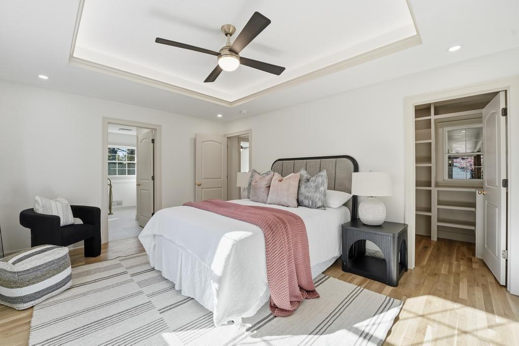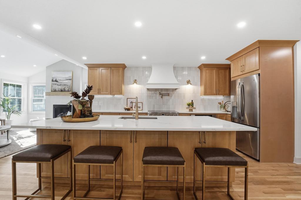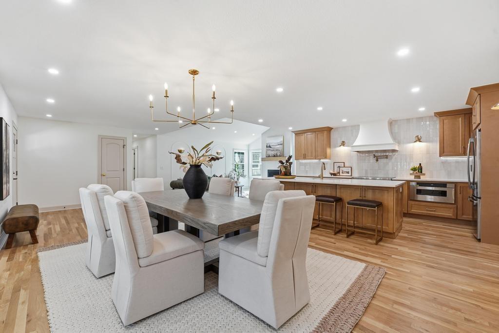 ABSOLUTELY STUNNING REMODELED RANCH IN THE HEART OF LEAWOOD! This beautifully reimagined 4-bedroom, 3-bath home perfectly blends timeless charm with sophisticated modern design. Step inside to an inviting open-concept layout featuring gleaming refinished hardwood floors, designer lighting and high-end finishes throughout. The vaulted family room is filled with natural light and anchored by a cozy fireplace—ideal for gathering or relaxing. Show stopping kitchen will impress any chef with quartz countertops, custom cabinetry, walk-in pantry, stainless steel appliances and a large eat-in island perfect for entertaining. Seamlessly connected dining area with built-in dry bar makes hosting effortless! Retreat to the spacious primary suite boasting a walk-in closet with washer/dryer hook-ups and a luxurious spa-inspired bath with double vanity, soaking tub and walk-in shower. A second main-level bedroom and full bath offer flexibility for guests or a home office. Full, finished lower level expands your living space with a generous rec room, two additional bedrooms, a third full bath and ample storage. Enjoy outdoor living on the patio overlooking the beautifully landscaped backyard with access from the family room to easily move the party outdoors. Bonus feature includes an EV car charger in the attached garage. Located in a highly sought-after Leawood neighborhood near parks, top-rated schools, premier shopping and dining. Move-in ready, meticulously updated and absolutely stunning—WELCOME HOME!