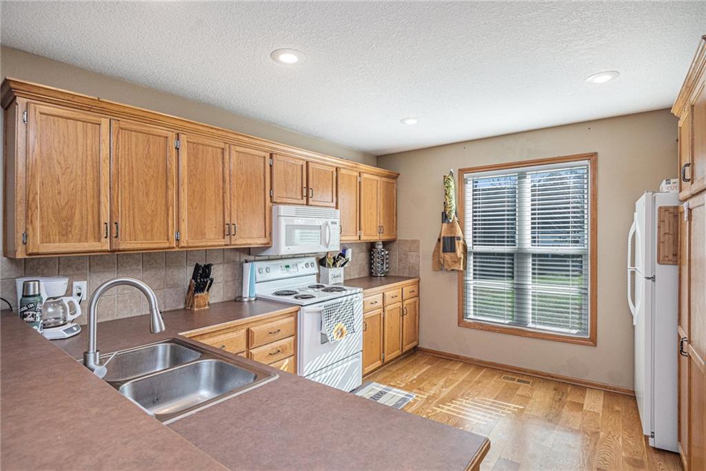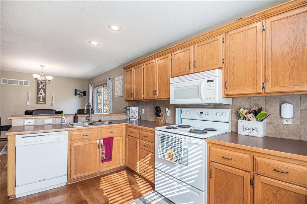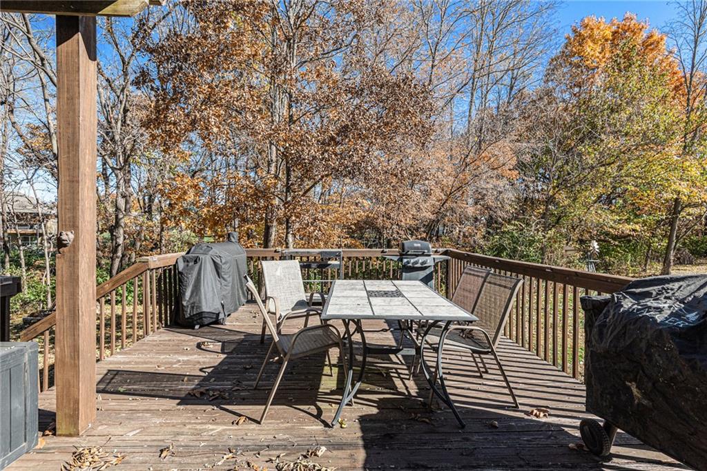 Welcome home! Well maintained split entry located on a peaceful lot backing to green space at just over an acre! Front porch offering curb appeal and charm. Walk into the cozy living room space with a vaulted ceiling and floor to ceiling stone fireplace. Upstairs is the kitchen/dining room combo with wood floors and plenty of cabinet space. Right down the hall is the primary suite with a newly updated bathroom and two additional bedrooms with a hall bath. Finished basement downstairs with a half bath and additional storage space. Come check it out!