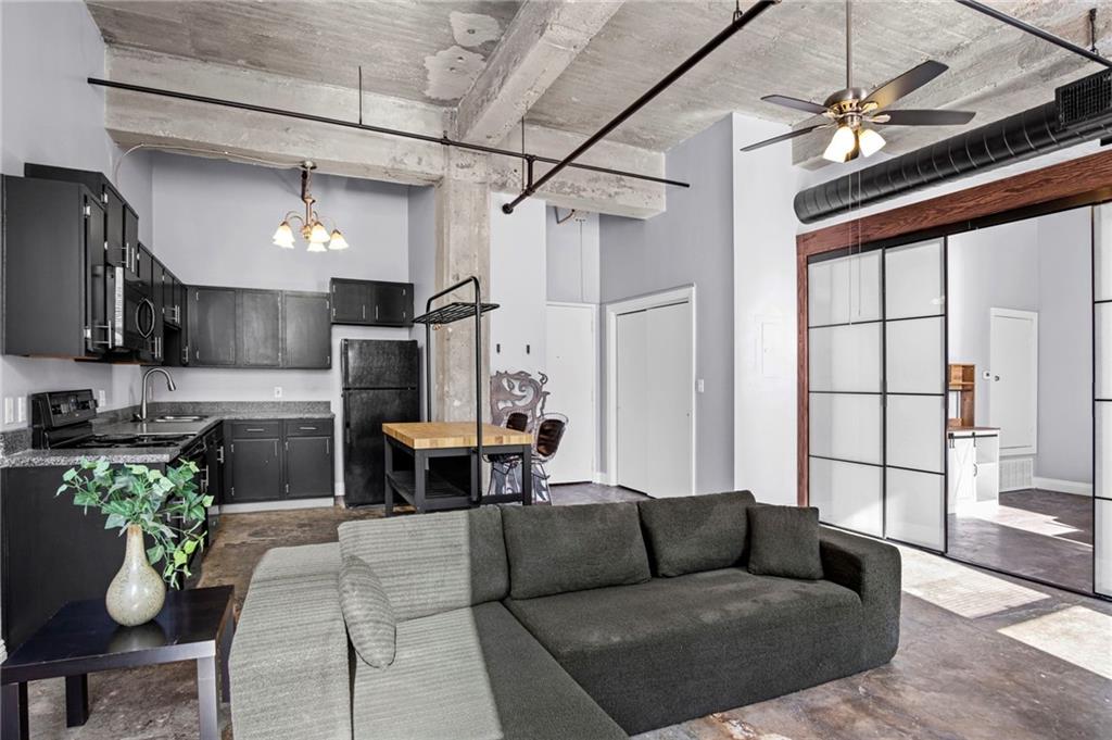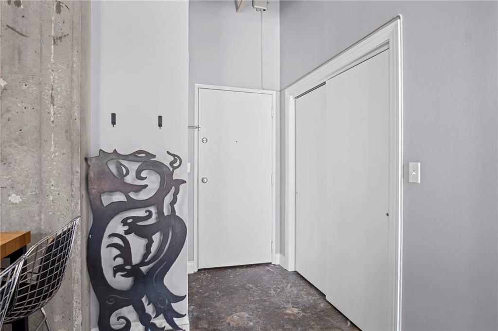 Sleek loft in the River Market! This one bedroom has concrete floors and ceilings, exposed brick, and large windows bringing in amply natural light. Brand new sliding door gives the opportunity for an open loft concept or the privacy of an enclosed bedroom - your choice! One parking permit is included and additional designated surface or carport parking is available to purchase. Walk to the City Market, hop on the streetcar right outside your door, or take advantage of the easy highway access nearby. One year seller paid home warranty included! Put your mind at ease in this healthy condo building with LOW HOAs!