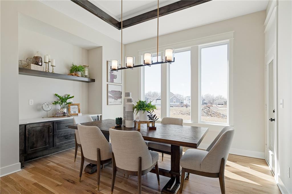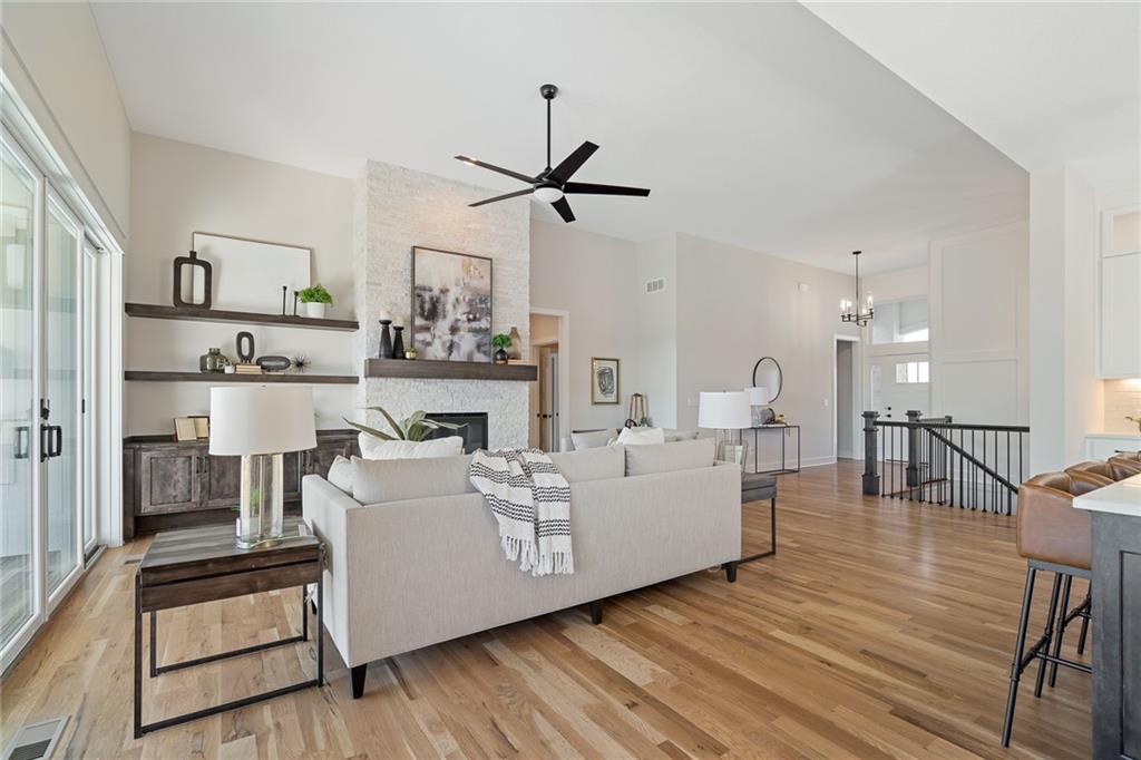 Be wowed by the upgrades & high-quality construction in the stunning Estancia II by DCB Homes on fantastic lot backing to HOA greenspace (back faces east & even has a view of the lake!). This Reverse 1.5 features an open airy & expansive main level w/ large Great Room featuring floor to ceiling split stone at the fireplace, built in cabinets with floating shelves and an 8x12 double slider leading from the Great Room to the back patio. Open dining area with built in cabinet with quartz top & well-appointed cook's kitchen with quartz countertops, gas range, built in appliances. One of the favorite features of this home is the butler's pantry with prep sink off the kitchen and huge pantry. Spacious Master Suite w/ shower, freestanding tub, XL closet & 2nd bedroom & bath on the main level. Finished walk-out lower level w/ large Rec Room, wet bar and large Rec Room for lots of entertaining, 3 secondary bedrooms, full bath & tons of storage. **PHOTOS OF FINISHED HOME ARE OF A SIMILAR HOME** Lakeview Ridge is a new build community just west of Lake Olathe with great homes started and fantastic lots available. You can get to the neighborhood off of Dennis & Houston with easy access from K7 or coming from Lakeshore. Our development is right next to Lake Olathe and neighborhood feeds into Clearwater Creek Elementary, Oregon Trail Middle School and Olathe West High School. Estimated completion in March 2026. NOW IS THE PERFECT TIME TO COME IN AND FINALIZE SELECTIONS!!