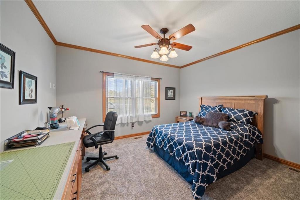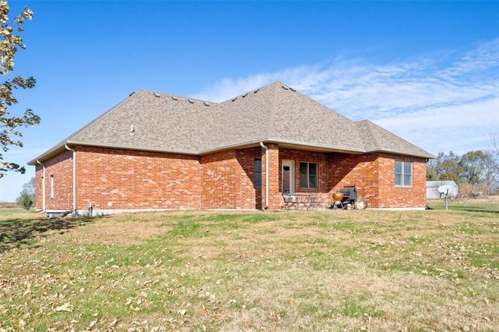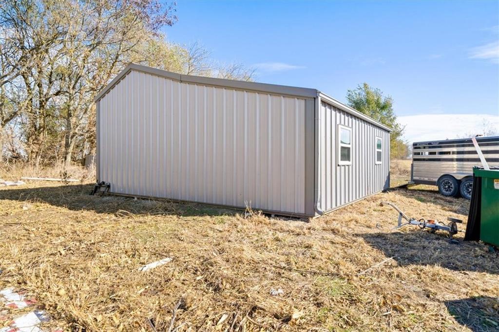 Your own private sanctuary on 20 Acres M/L—just off blacktop, surrounded by nature and peaceful privacy. The only neighbors you’ll see are deer, turkey, squirrels, and an abundance of wildlife. This thoughtfully designed open floor plan showcases excellent construction throughout, featuring a chef’s kitchen with top-of-the-line cabinetry, a massive center island, and generous workspace. Three bedrooms total, including a flexible room ideal for an office, hobby space, or guest suite. Enjoy true main-level living with wide, handicap-accessible doorways and comfort in every detail. 50x 30 and 25x26 Outbuildings ready for storage, hobby or raising livestock. Farm life, Refined. Need more land? An additional 30 acres are available (for a total of 50 acres) for an increased purchase price.