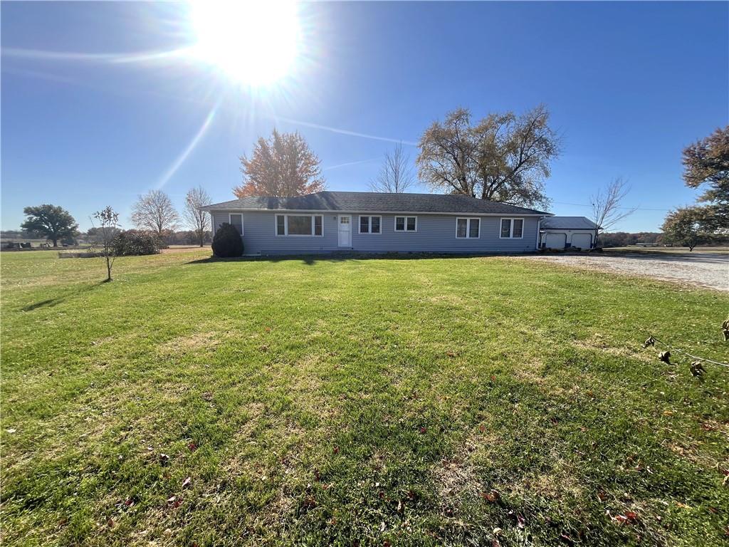 Welcome home to this spacious ranch featuring 1,764 sq ft of comfortable main-level living. With 4 bedrooms and 2 full baths, this home offers plenty of space for family and guests alike. Nestled on a beautiful 1.7 acre corner lot, you’ll enjoy peaceful country views while still being just minutes from town conveniences. Outside, a 24' x 36' detached two car garage provides ample storage and workspace. Whether you’re relaxing on the porch, entertaining in the open living areas, or enjoying the expansive yard, this property offers the perfect blend of country charm and everyday comfort.