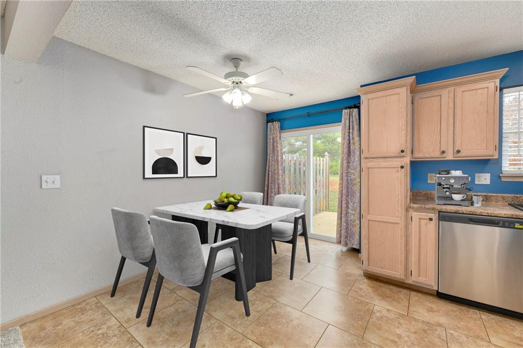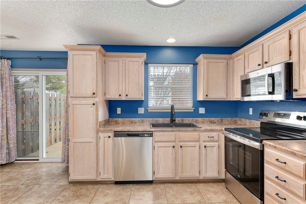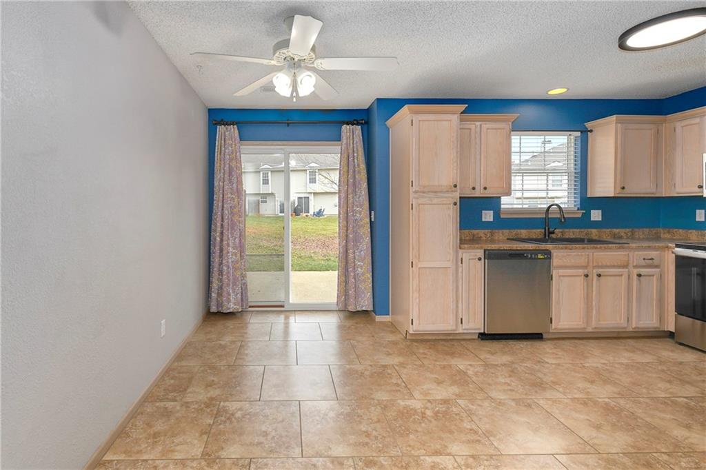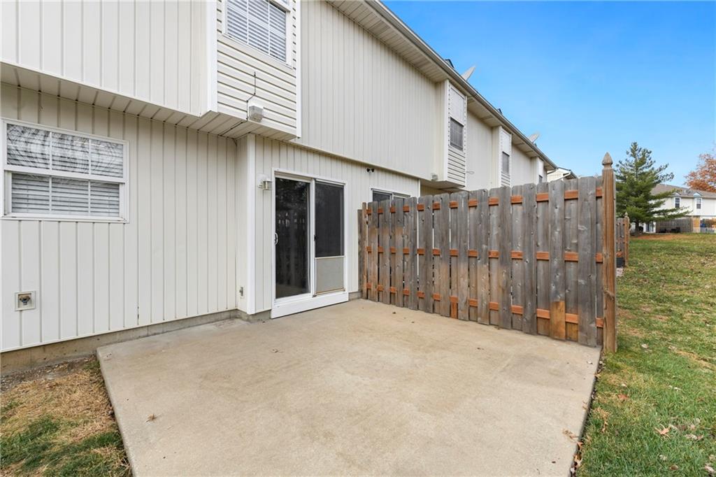 Highly sought after end unit that backs to greenspace with trees. MOVE IN READY!!! Cleaned from top to bottom (even power washed the patio) with a splash of color (various ocean/sky blues and relaxing grays). NEW - kitchen SS appliances (stove, microwave, & dishwasher), carpet throughout the whole unit, kitchen faucet, primary suite - light fixtures, sink faucet, shower & bathtub faucets, toilet flange ring & wax ring), water heater (next week), window & storm door screens (4), & 2 sets of blinds. Seller replaced A/C unit the summer of 2023 to a Trane XR (upgraded). Other updates include - kitchen ceiling light fixture, taller toilet in primary bath, & new fan in living room. BIG BONUS - Garage features an attic pull-down with stairs for additional storage. Front faces West (sun to clear driveway). The patio is on the East (shade for the evening). Washer & dryer stay with the unit. Amenities include lawn care, snow removal, community pool, exterior maintenance. Neighborhood is owner occupied only, no rentals allowed. Home is close to shopping and restaurants, with quick highway access, and located within award winning Lee's Summit School District (New middle school - 1 mile to the East). Don’t miss out on this fantastic opportunity to own a move-in ready home with thoughtful updates in a prime location. COME SEE IT TODAY!
